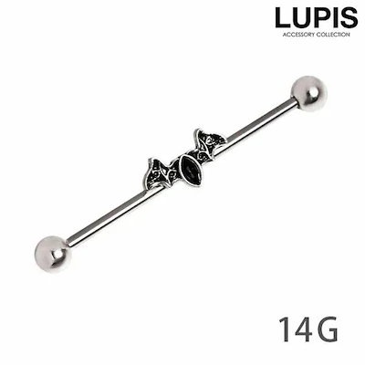 LUPISボディピアス ストレートバーベル インダストリアル 14G 14ゲージ サージカル ステンレス 316L 金属アレルギー対応 コウモリ レディース メンズ lupis