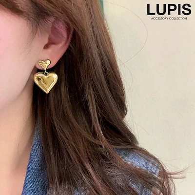 LUPISピアス レディース ハート メタル ぷっくり かわいい 華やか 大人ガーリー ゴールド 揺れる カジュアル きれいめ ルピス