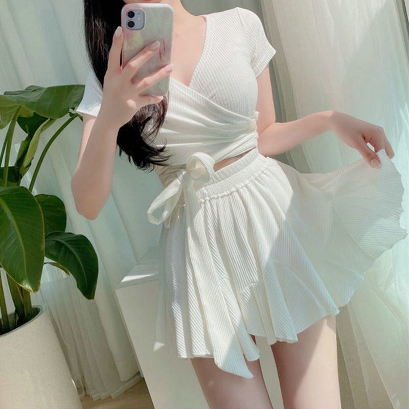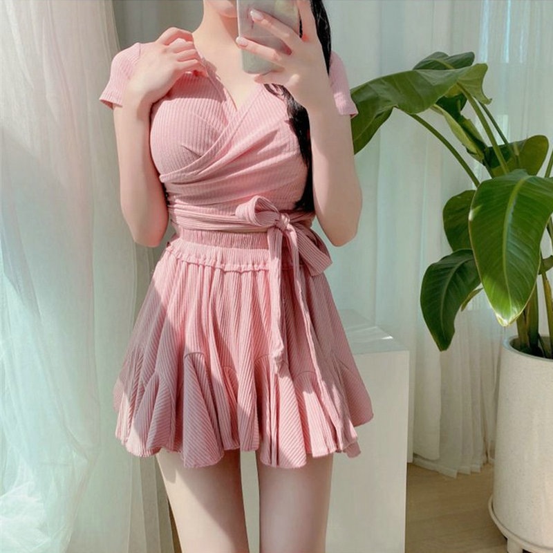 夏の新作ご紹介 可愛い水着 韓国ファッション 上下セット水着 シンプル ワイルド 水着 sweet系 無地 水着 レディース 体型カバー S/XL