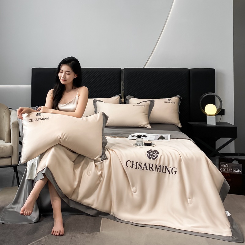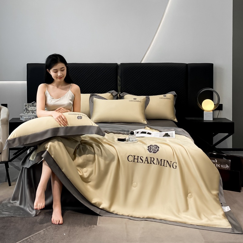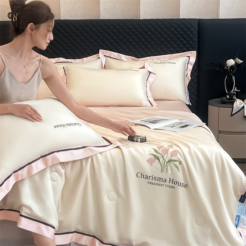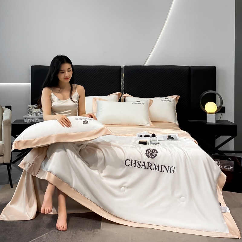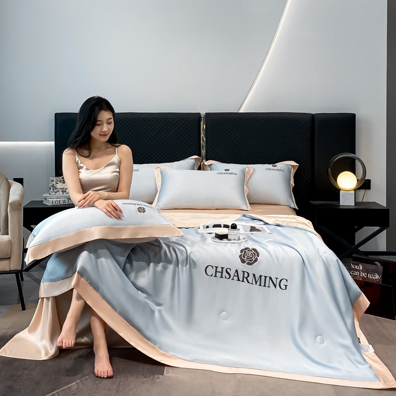 夏の刺繍 洗えるテンセル夏掛け布団 冷房掛け布団 洗濯機OK ヌード 睡眠 涼感 アイスシルク 冷房掛け布団 4点セット