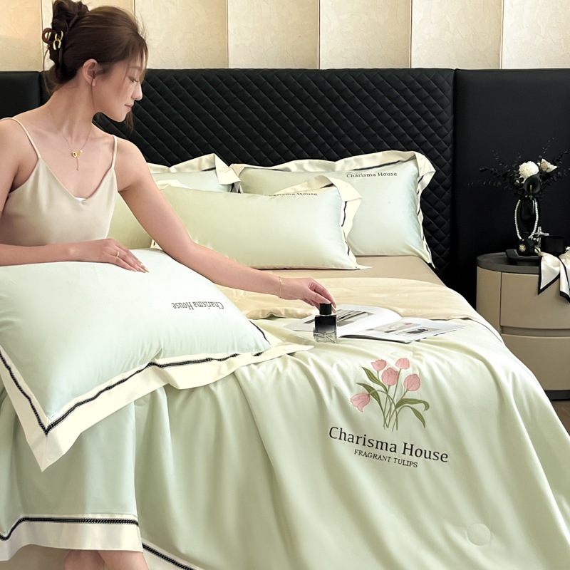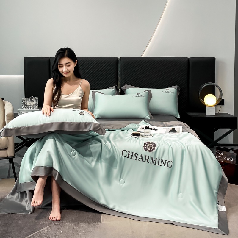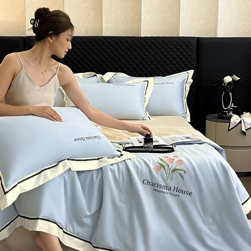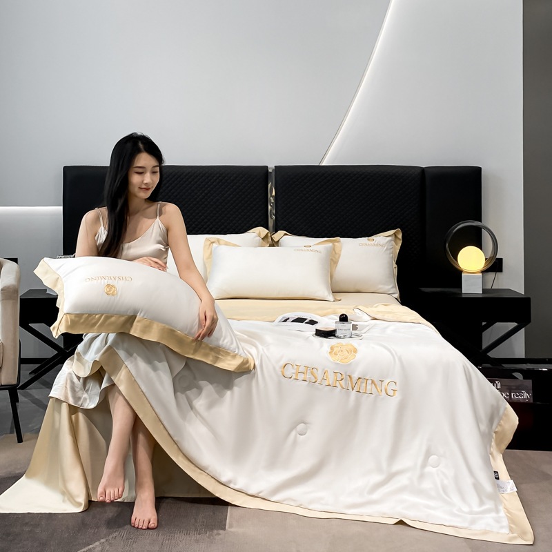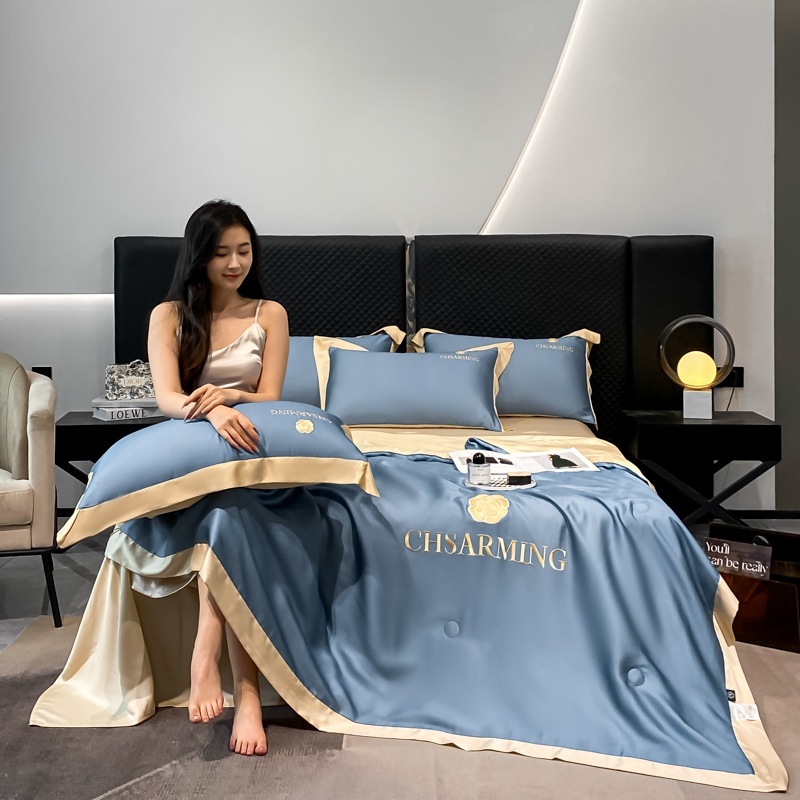 夏の刺繍 洗えるテンセル夏掛け布団 冷房掛け布団 洗濯機OK ヌード 睡眠 涼感 アイスシルク 冷房掛け布団 4点セット