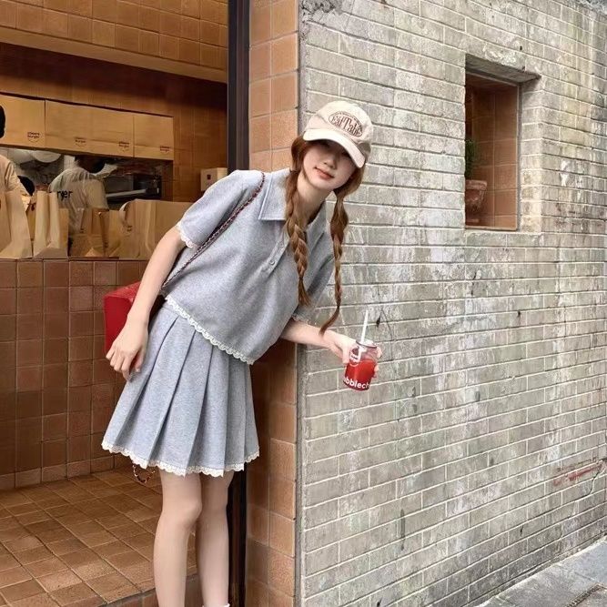 迅速な セットアップ学院風グレープリーツスカート2点セット女性のお洒落活発減齢塩系感甘辛セットt