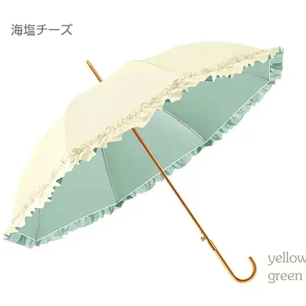 細かい事を言うのであれば、傘を開くボタン部分に接着剤がはみ出ていたり、フリル部分の縫い目や端が切りっぱなしになっていたりと耐久性に不安がありますが、色味は画像通りのきれいな黄色と黄緑です。持ち手のゴールド感などもきれいなので、このお値段の割に良い傘だと思いました。 -