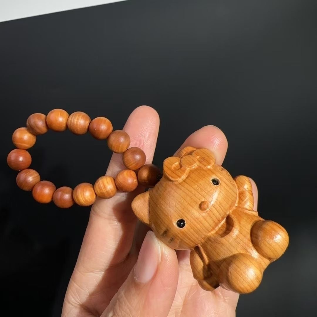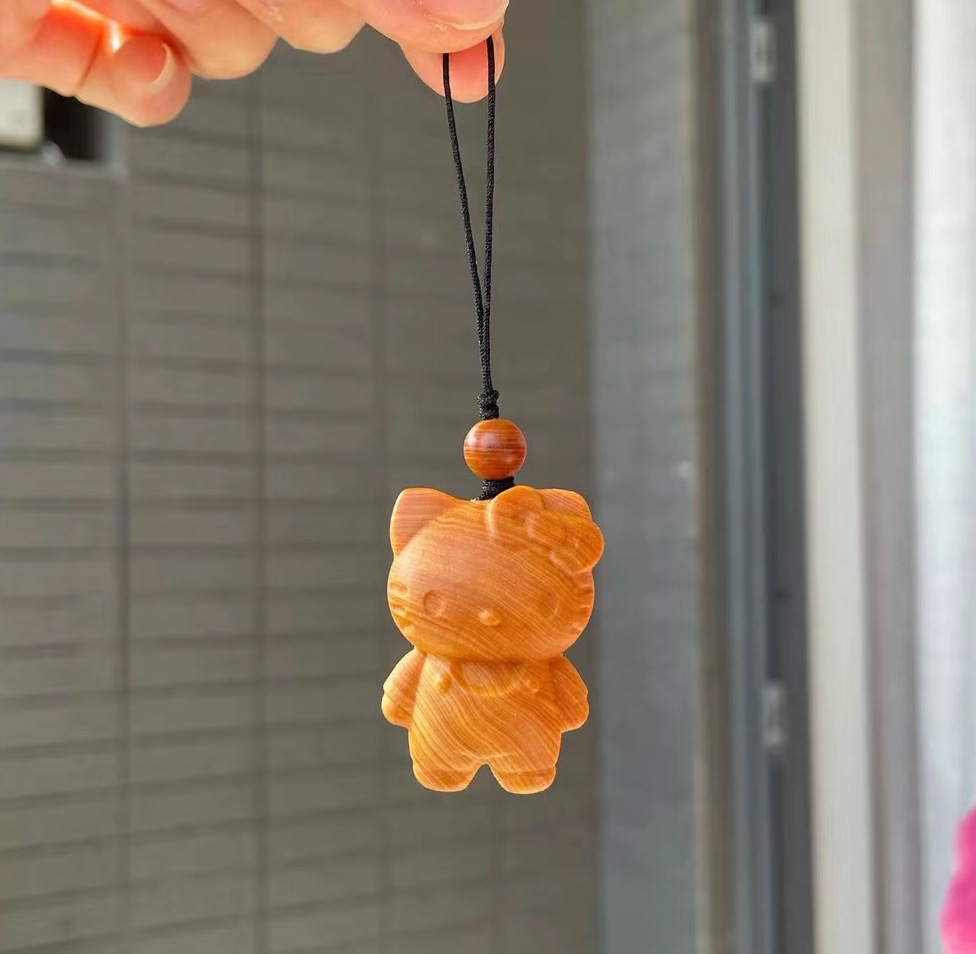 【3日以内に出荷!】新トレンド萌え寵崖柏木キティかわいい手ひねりバッグショルダーバッグストラップ天然崖柏木手ひねり遊び文キティファッションフィギュア木彫りキーホルダーストラップ誕生日プレゼント