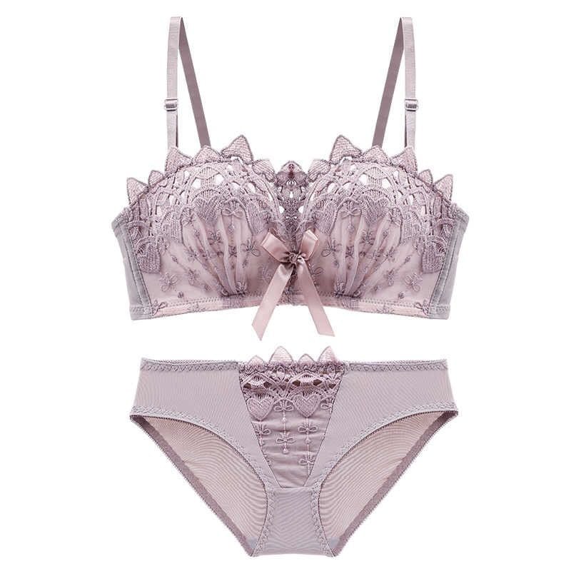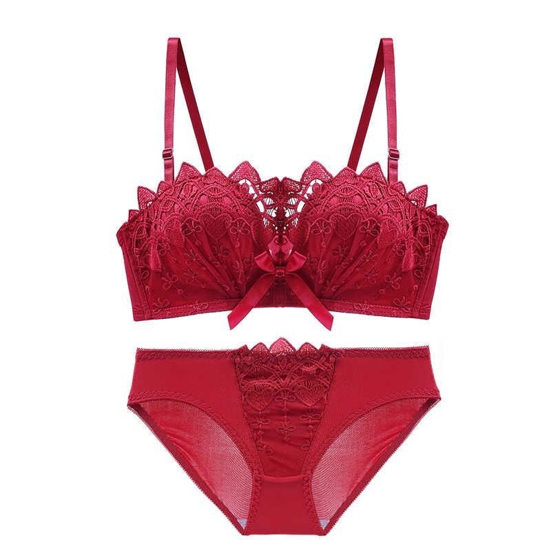 可愛いセット下着 小さな胸 ギャザリング ランジェリー ショーツ ノンスチールリング 調整 ブラジャー セット