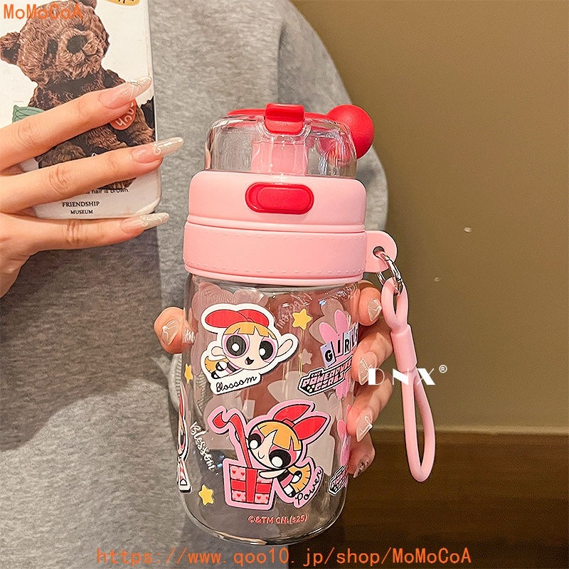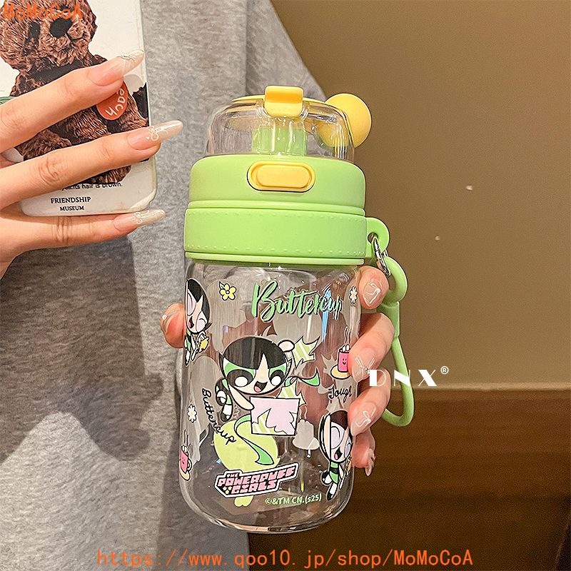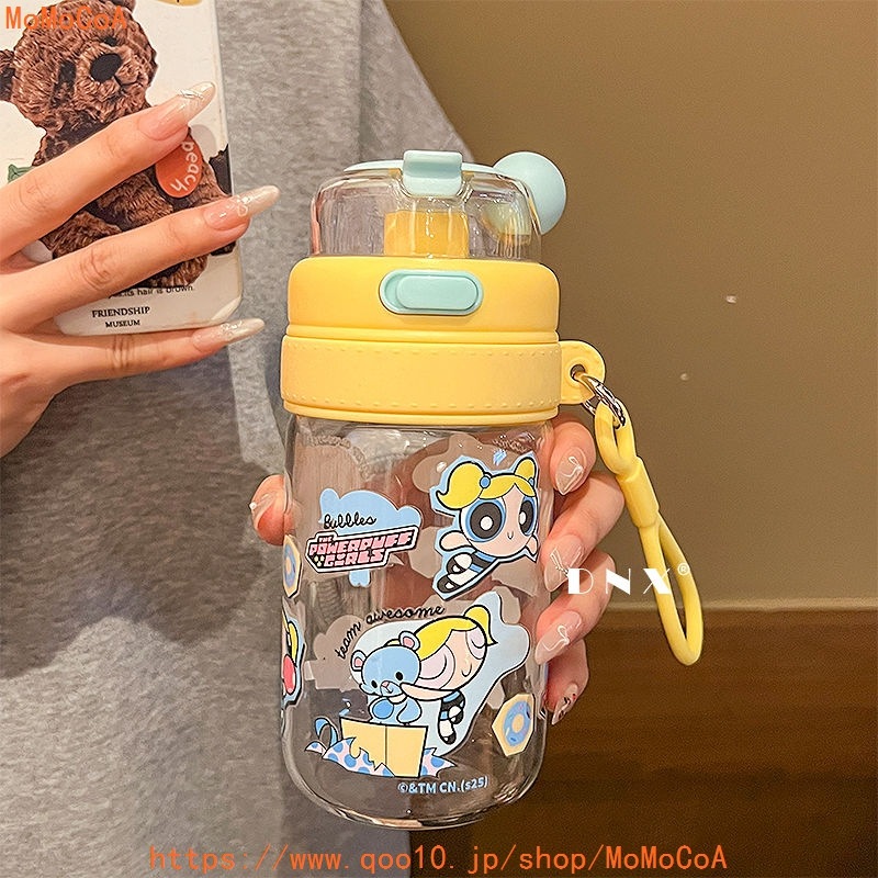パワーパフガールズ 水筒 550mL 大容量 ウォーターボトル タンブラー 蓋付き ストロー付き 直飲み おしゃれ 可愛い 水筒