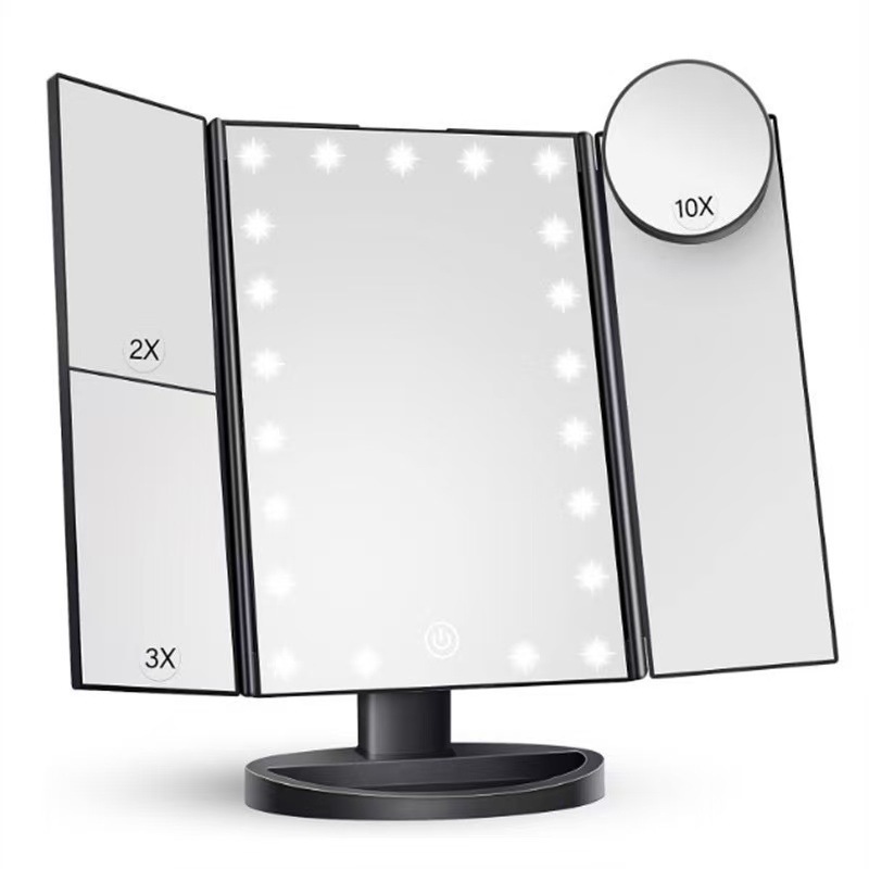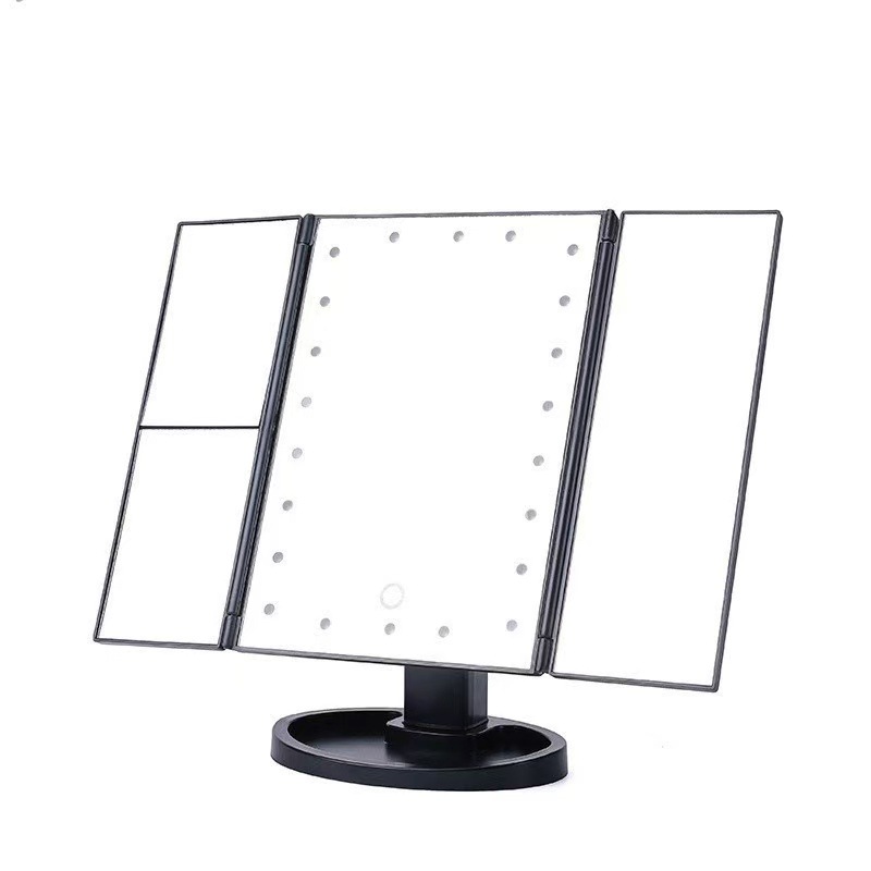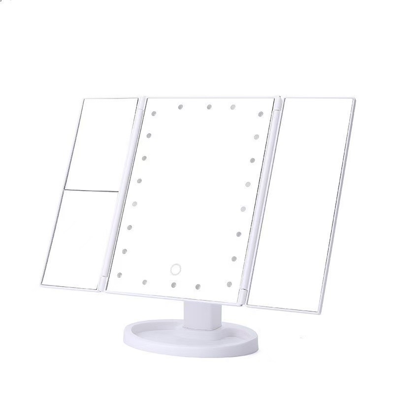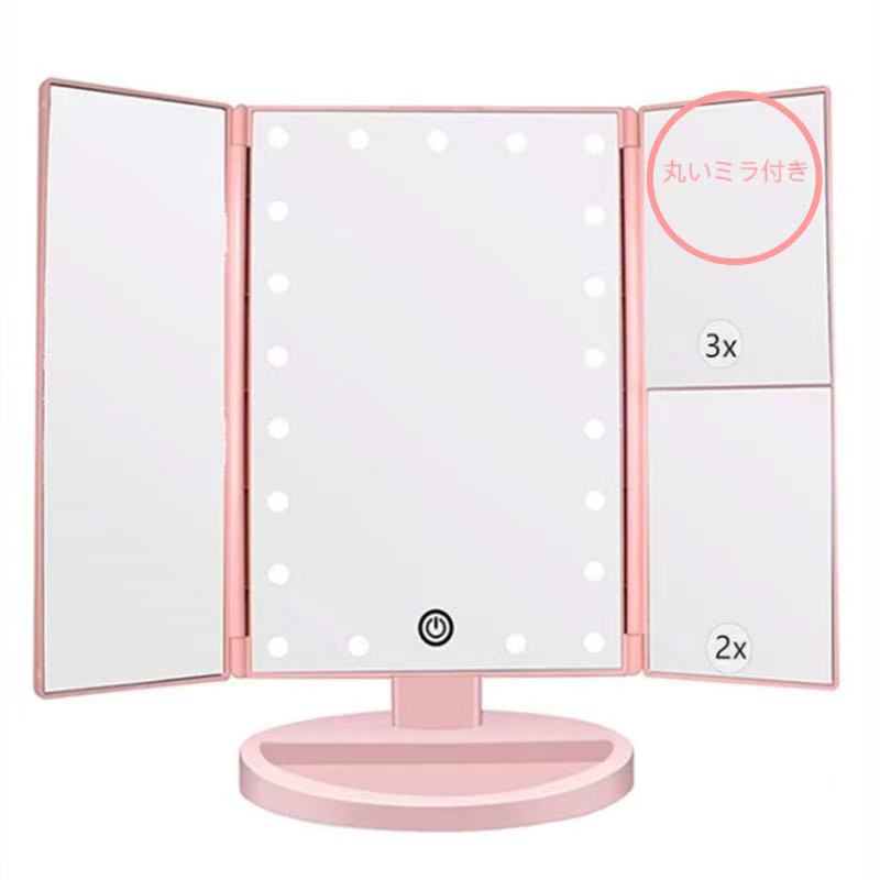三面鏡 卓上ミラー 女優ミラー LED ライト 付き 大型 大きい 化粧 メイク おしゃれ 可愛い 折りたたみ 拡大鏡 LEDライト付き スタンドミラー トレー