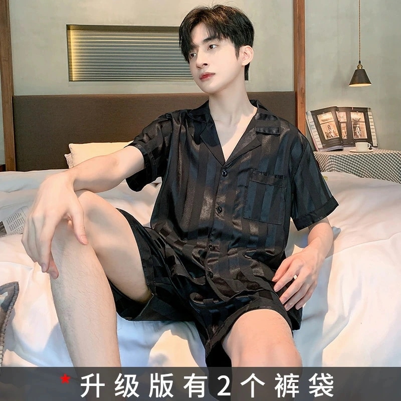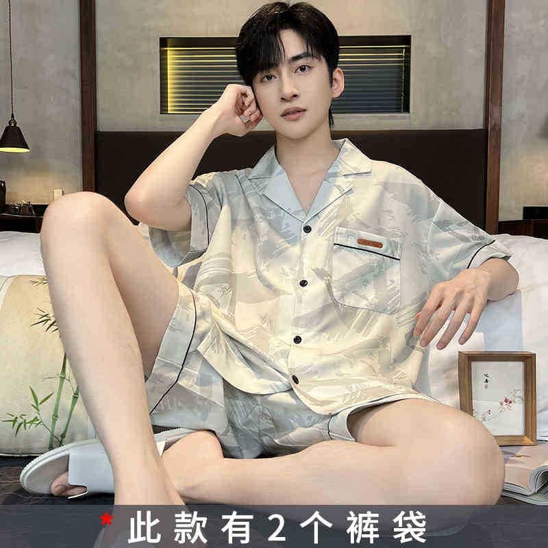ルームウェア メンズ 夏 2026新型アイスシルク半袖薄型夏の男性用部屋着シルクスーツ 韓国 パジャマ セットアップ 部屋着