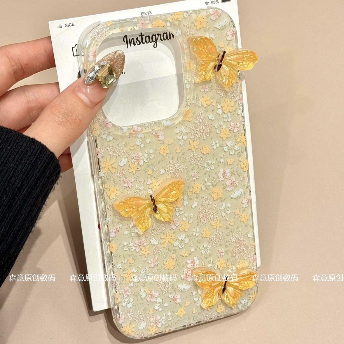 早春全画面花柄立体蝶iPhone16アップル15携帯ケース14二重層13落下防止に適し