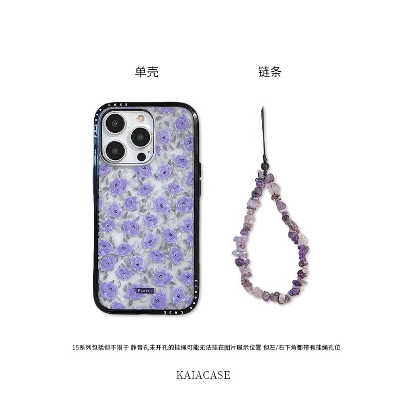 ロマンチックで優しい紫のバラの花の油絵iPhone携帯ケースiPhone 13/14/15/16 pro max韓国 流行り Apple