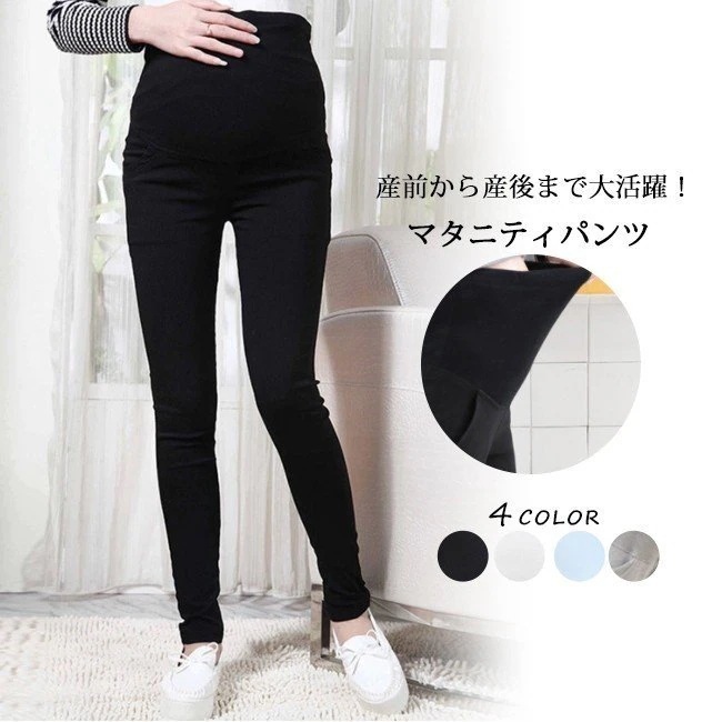 メール便 マタニティ スキニーパンツ オフィス 白 黒 グレー ブルー 無地 おしゃれ 薄手 ストレ