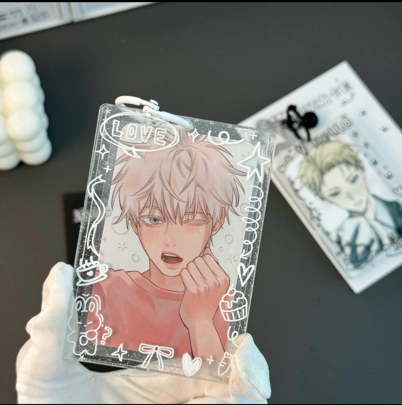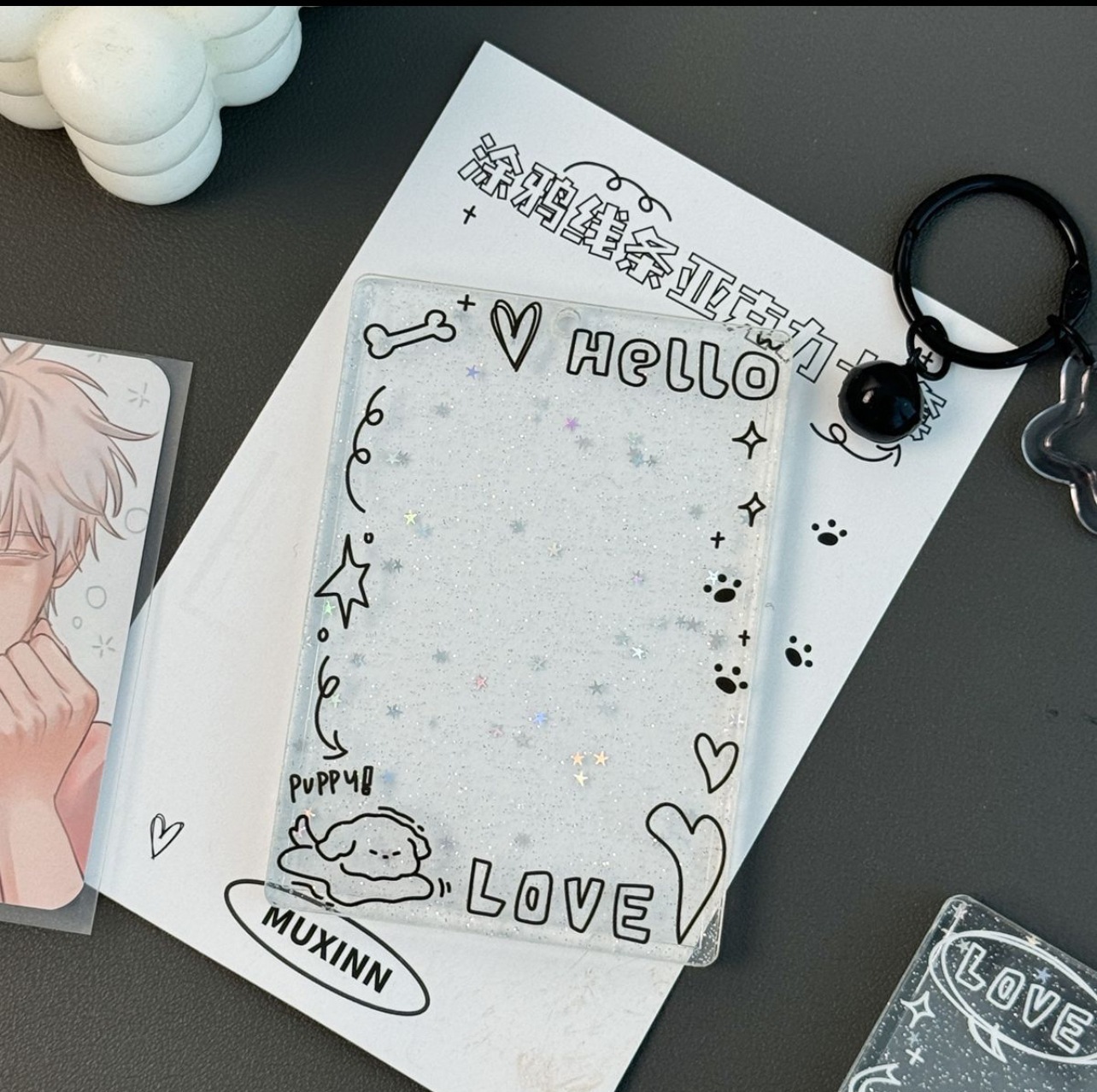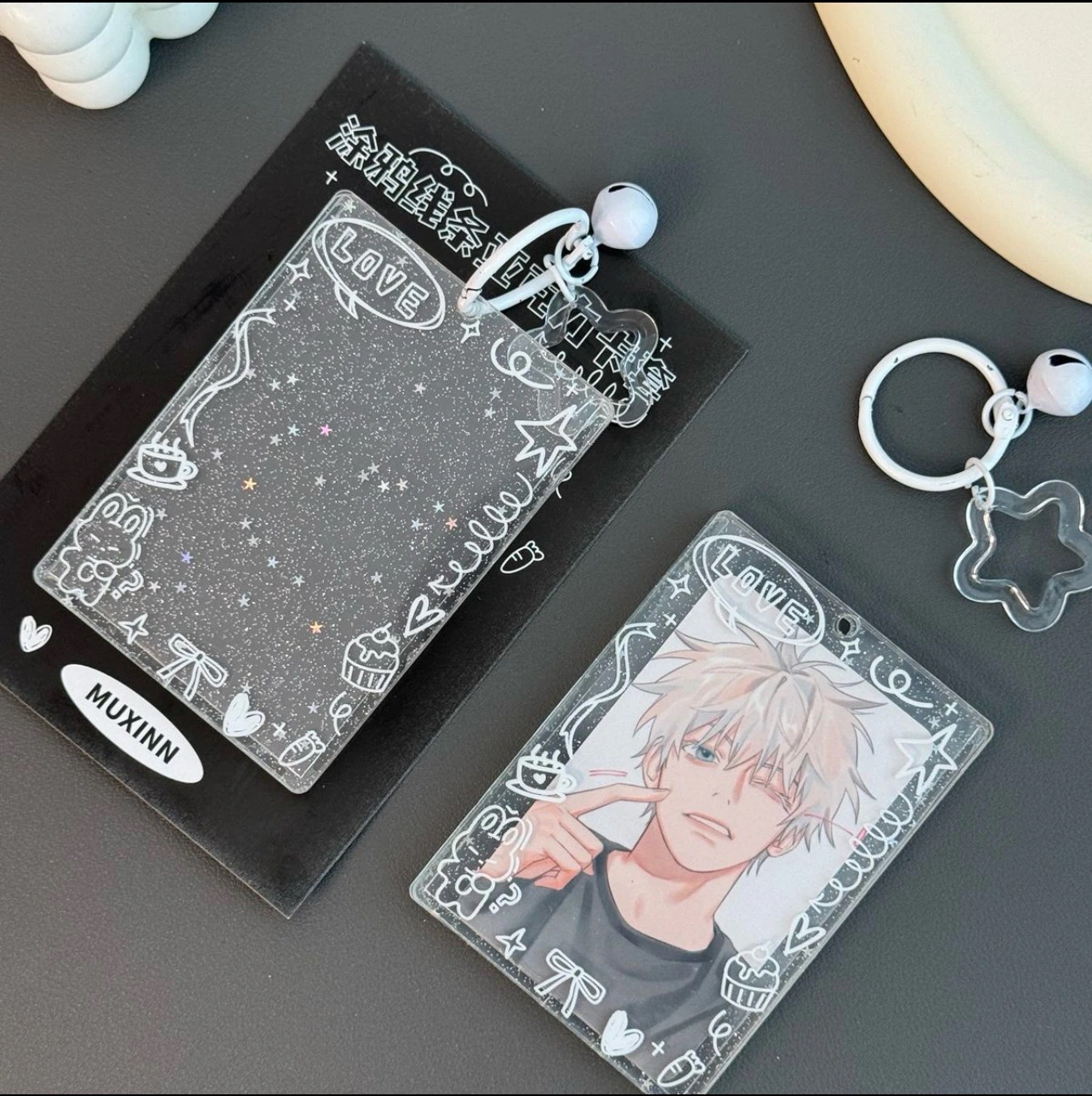 カードスリーブカード収納落書きデザイン星のような輝きアクリルカードスリーブ推し活用三寸サイズの小カード収納透明なポストカード用