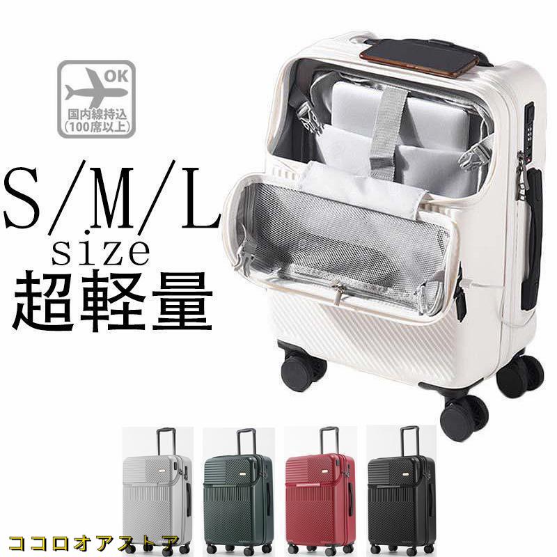 スーツケースsサイズキャリーケースmサイズフロントオープン機内持ち込みキャリーバッグ2泊3日軽量キャリー3泊4日拡張 40lおしゃれ ハード 静音かわいい