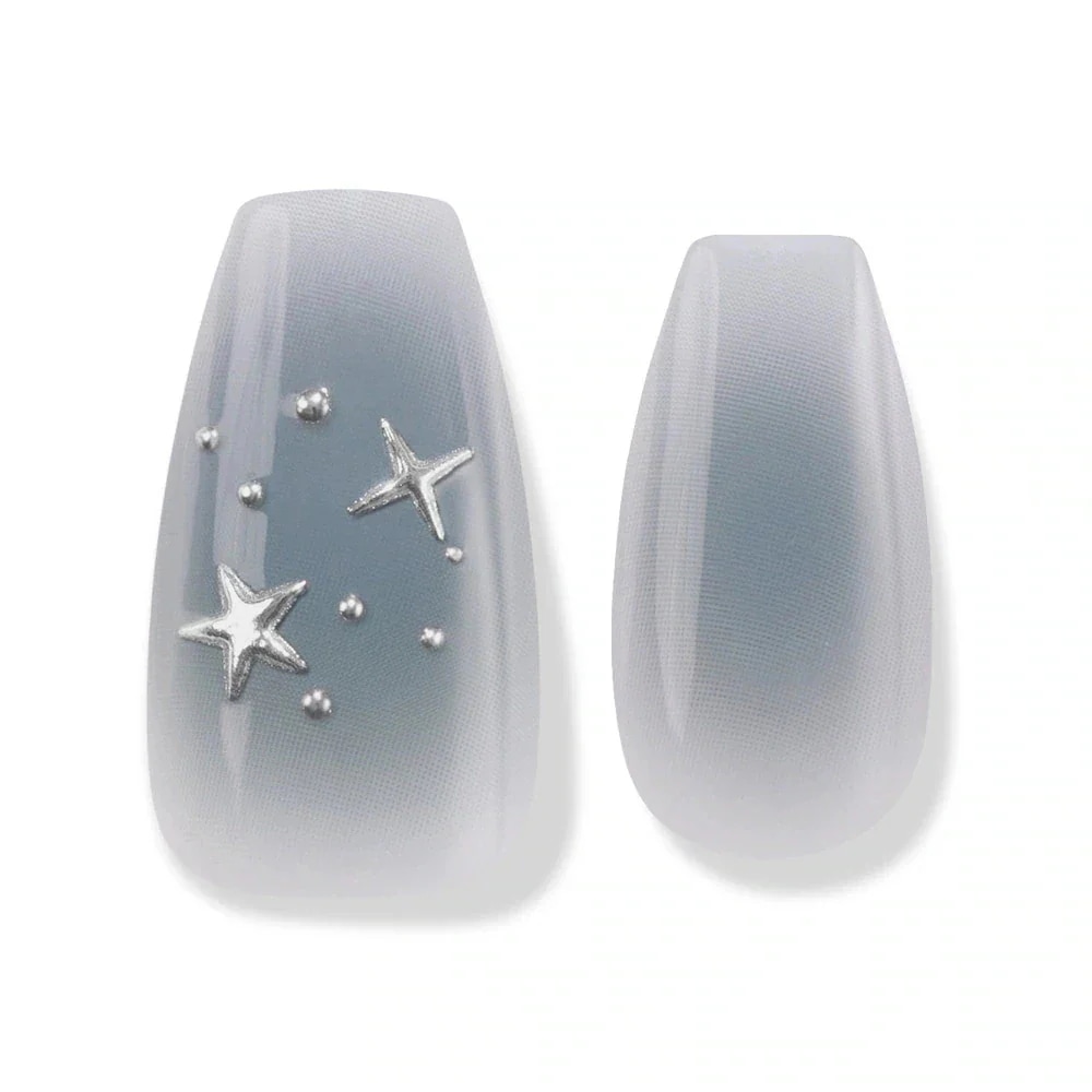 ここのシールタイプって剥がれやすいんだけど、ベースコートしてグルーでつければ長持ちするし、爪にも優しいのでオススメです。面倒かもだけど()