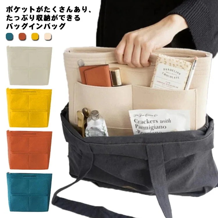 バッグインバッグ トート フェルト 大きめ リュック 取っ手付き 軽い 縦型 おしゃれ A4 整理整頓 フェルトバッグ インナーバッグ 大容量 収納バッグ 鞄 小物入れ ポケット マチあり レディース