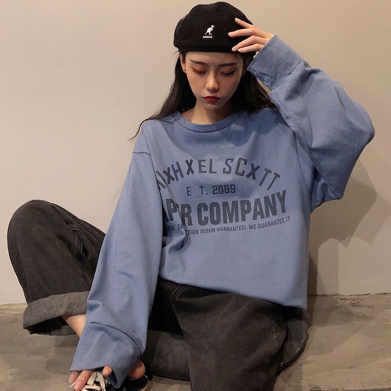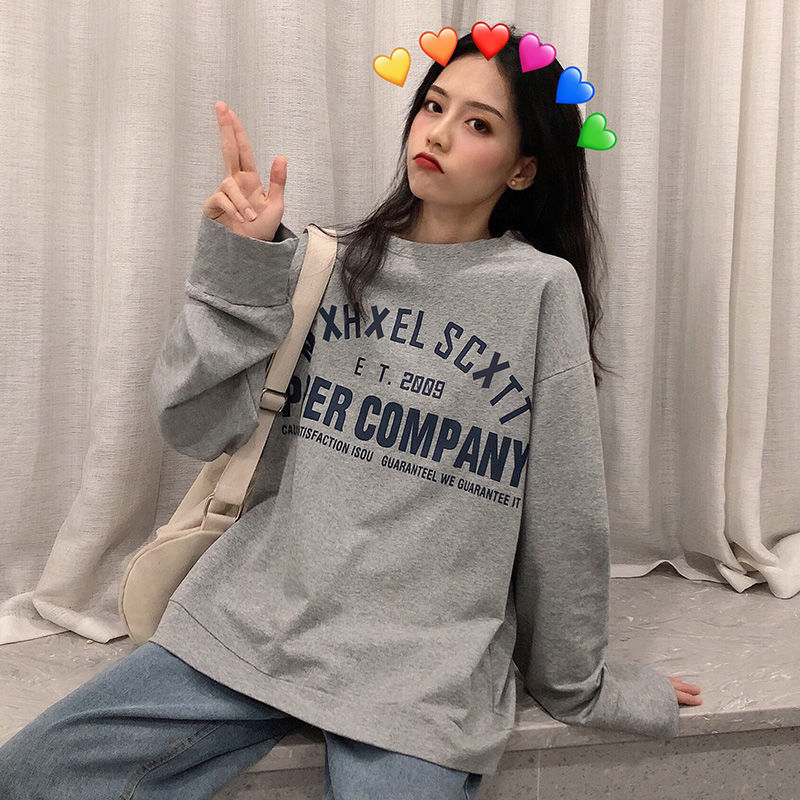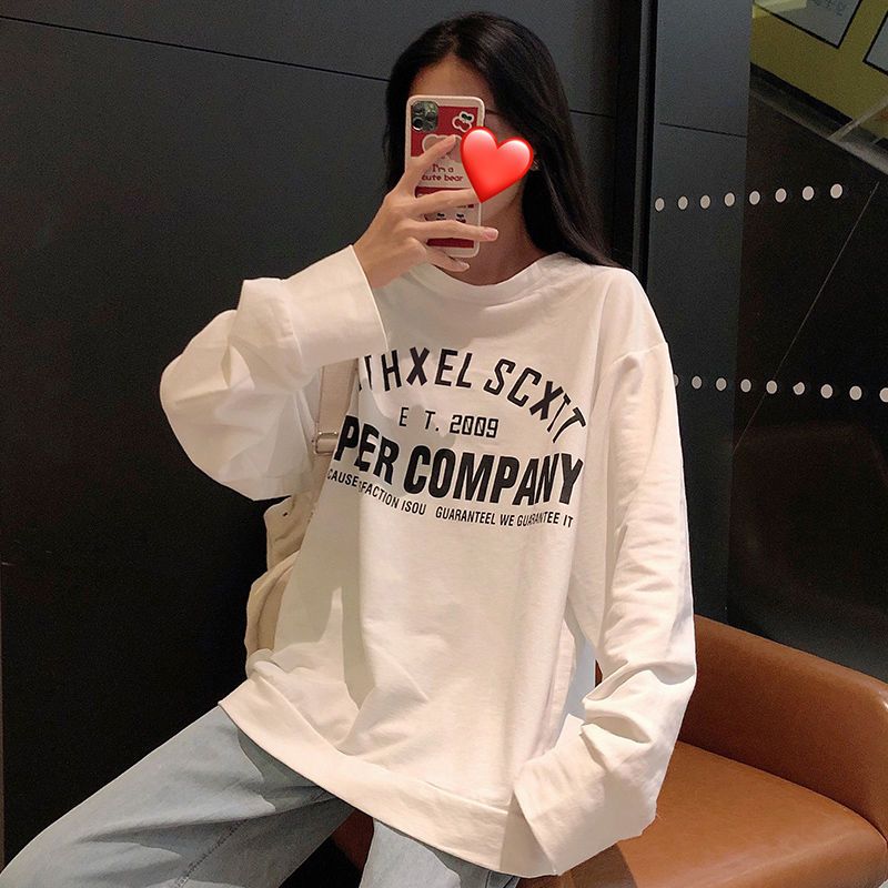 春と秋の長袖Tシャツ 韓国版ルーズ・タイド・ニュー・インス・トップ・セーター ロンT ロンティー ロングTシャツ ロングtシャツ レディース Tシャツ tシャツ レディース tシャツ 韓国