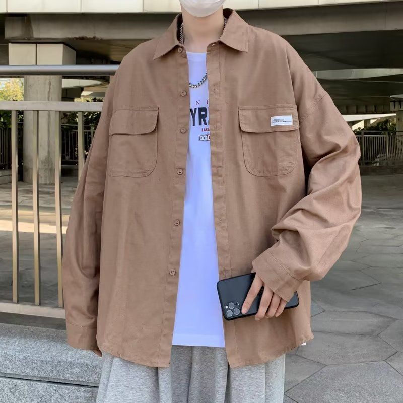 【2枚購入で100円OFF】韓国ファッション 長袖トップス ゆったりハンサム 男性シャツ アメリカンレトロ シャツ メンズ 春秋 新しい シャツ ブラウス 今っぽシアーシャツ