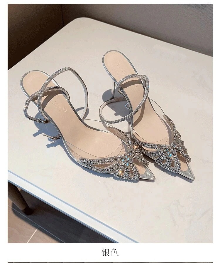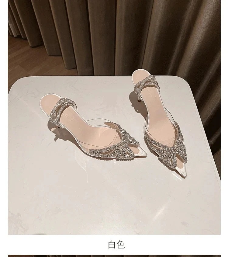 【2枚購入で100円OFF】シングルシューズ 新しいスタイルハイヒール女性細いヒール尖った透明なラインストーン弓結婚式靴 サンダル 韓国ファッション スタイルアップヒールパンプス