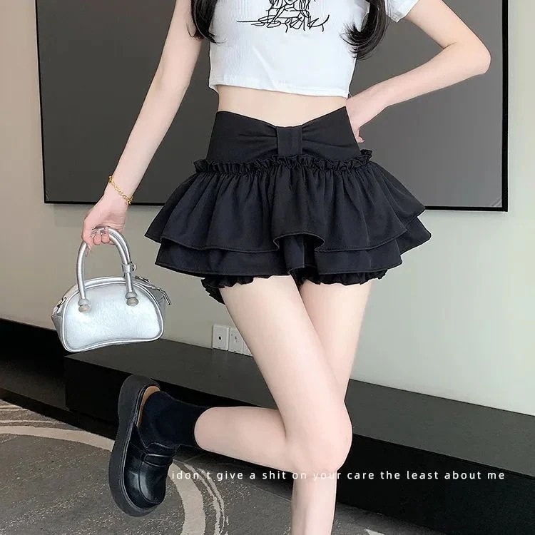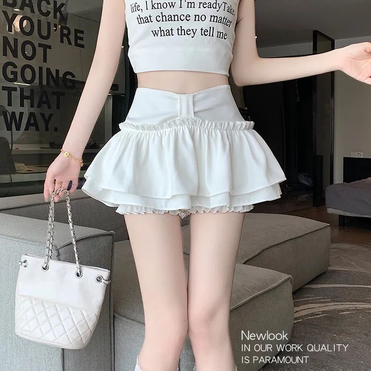 ラッフルミニ半身スカート リボンショートスカートパンツ