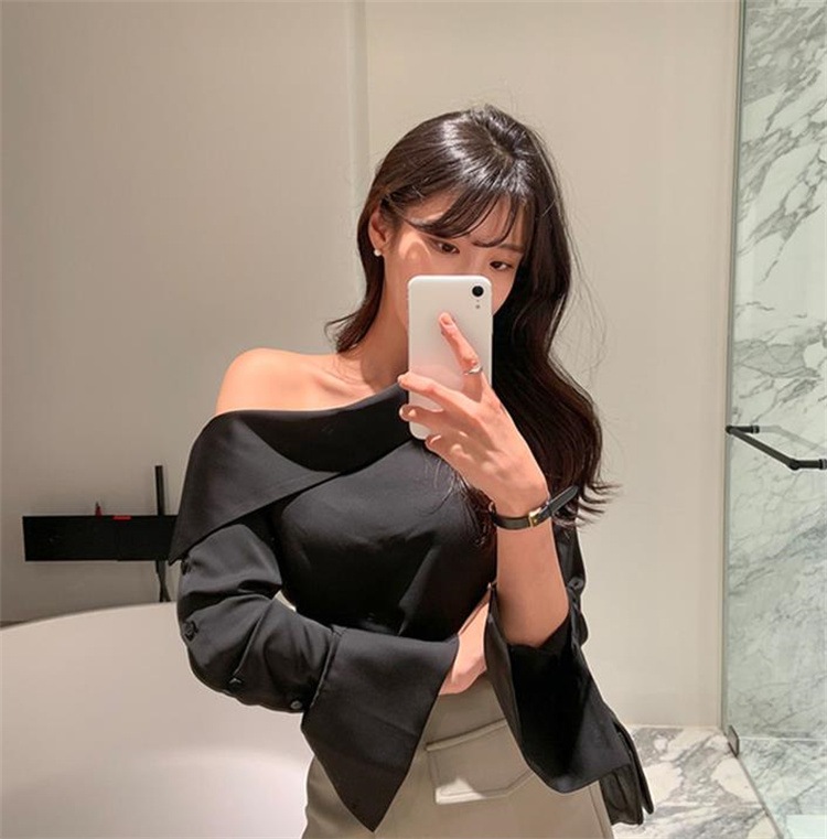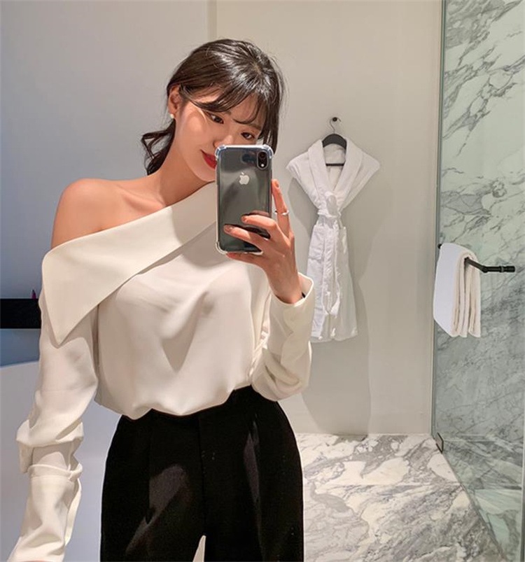 韓国ファッション オフショルダー 上着 長袖 セクシー トップス 肌にやさしい 気質 快適である ファッション デザインセンス シャツ
