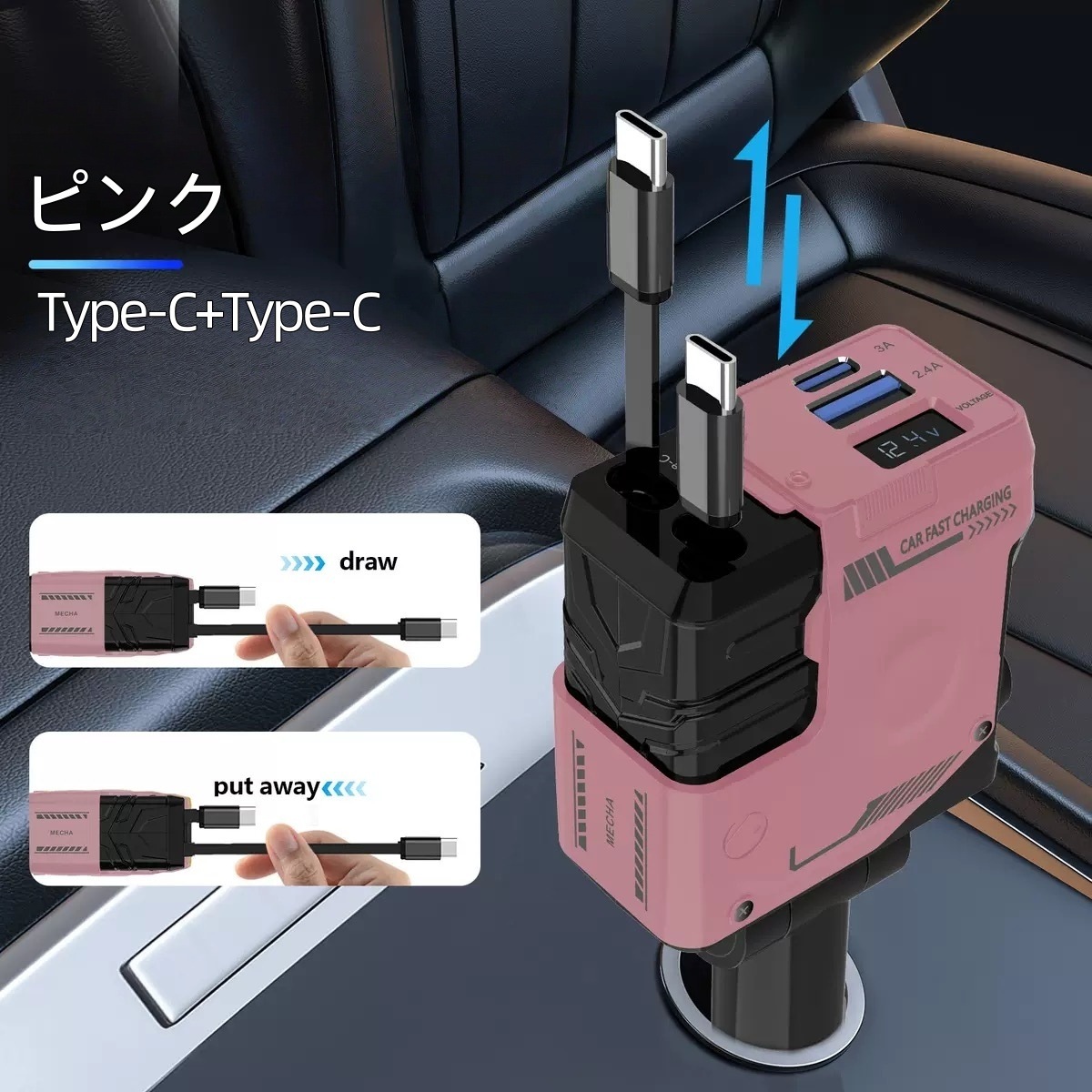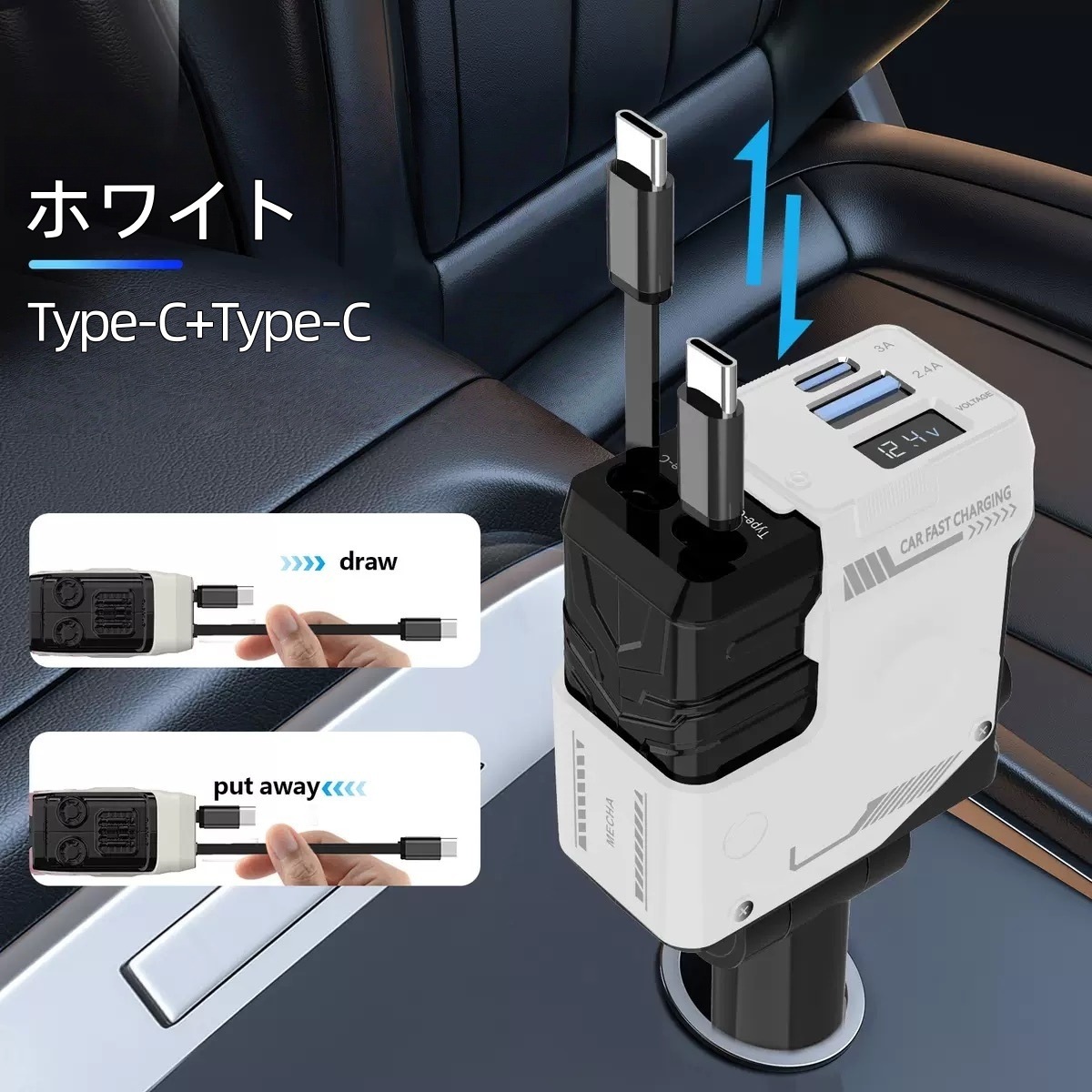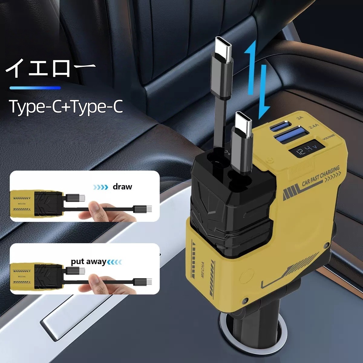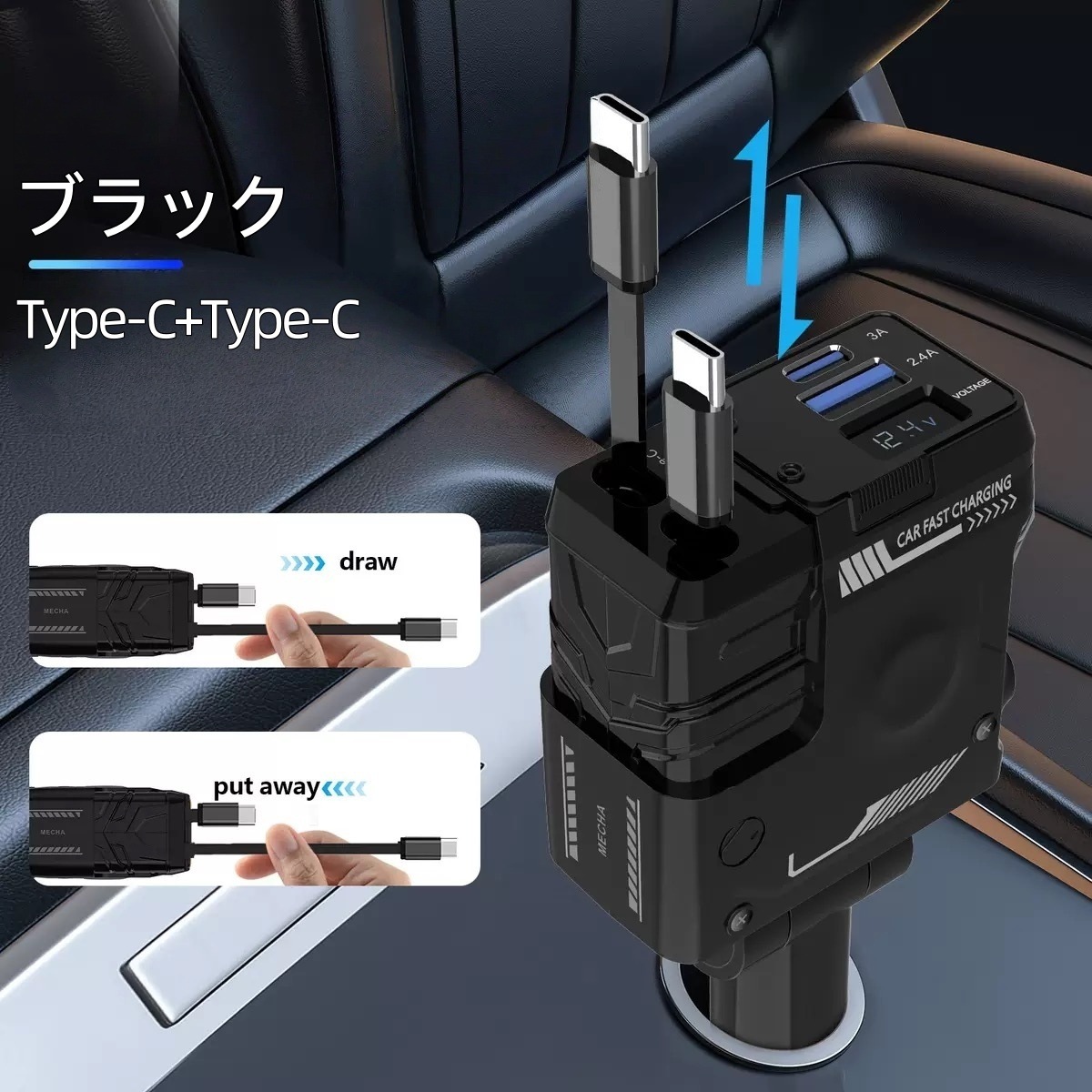 4-in-1機甲車載携帯充電器Android/iphone/Samsung対応120 Wスーパーフラッシュ充伸縮線