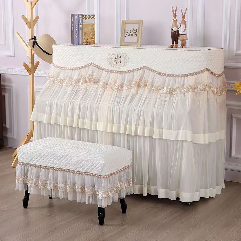 ピアノカバー 椅子カバー 2点セット フルカバー レース 電子ピアノカバー ピアノトップカバー アップライト デジタルピアノカバー 防塵カバー ピアノカバーセット 可愛い おしゃれ 韓国風