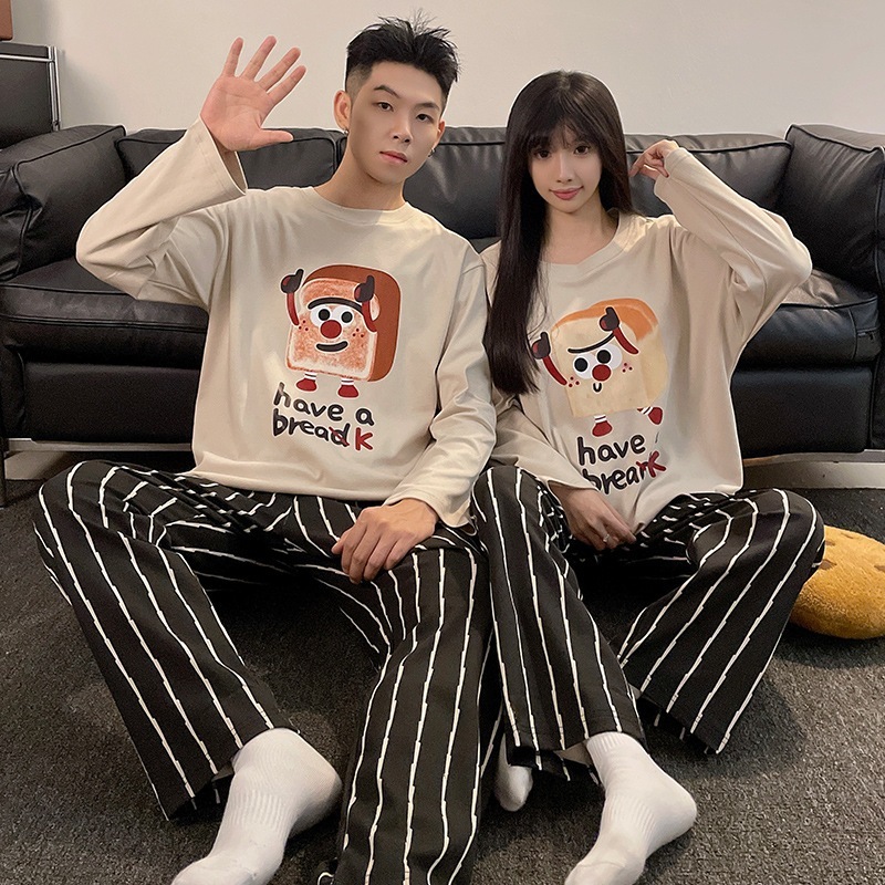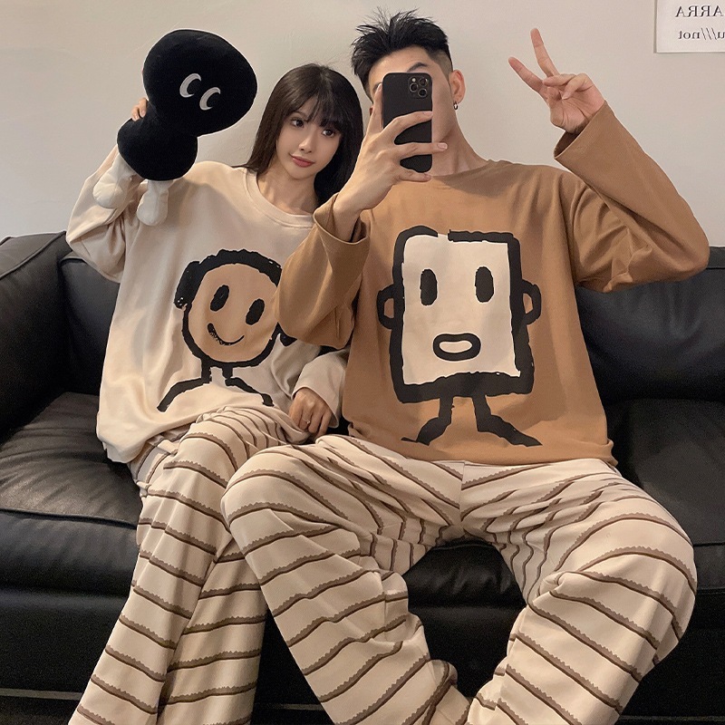 2025春新登場 カップルパジャマ 日系高級感 柔らかい快適 長袖 ルームウェア 春秋 通気性パジャマ セットアップ 韓国ファッション ゆったり部屋着 上下セット