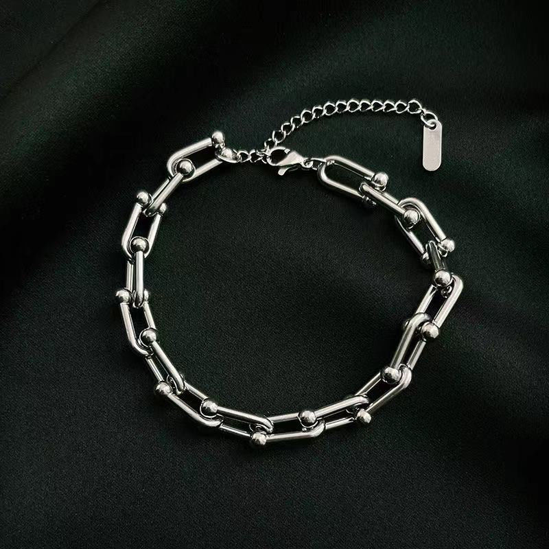 ブレスレット バングル 夏 新作 ブレスレット 冷淡風チェーン カップル 男女兼用 シルバー ブレスレット 色落ちしないシンプル ヒップホップ