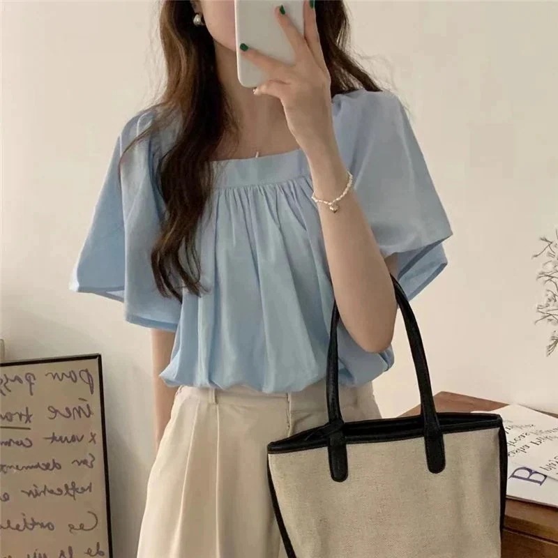 ブラウス 夏 ブラウス スクエアネック 着痩せ 半袖トップス 百掛け ブラウス レディース オフィス 通勤 半袖ブラウス韓国ファッションTシャツ