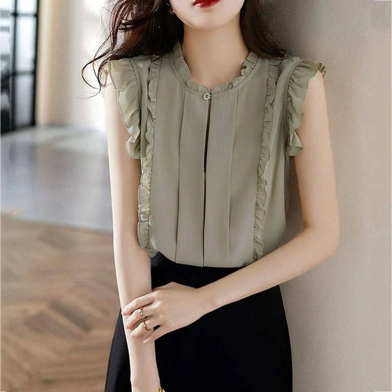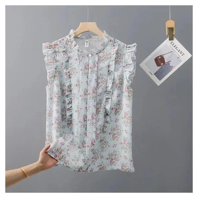 ブラウス 夏 大人お洒落 花柄 気質 ブラウス レディース 百掛け高级感 シフォンブラウス ノースリーブトップス 韓国ファッション 木耳縁 tシャツ 半袖 レディース 通勤