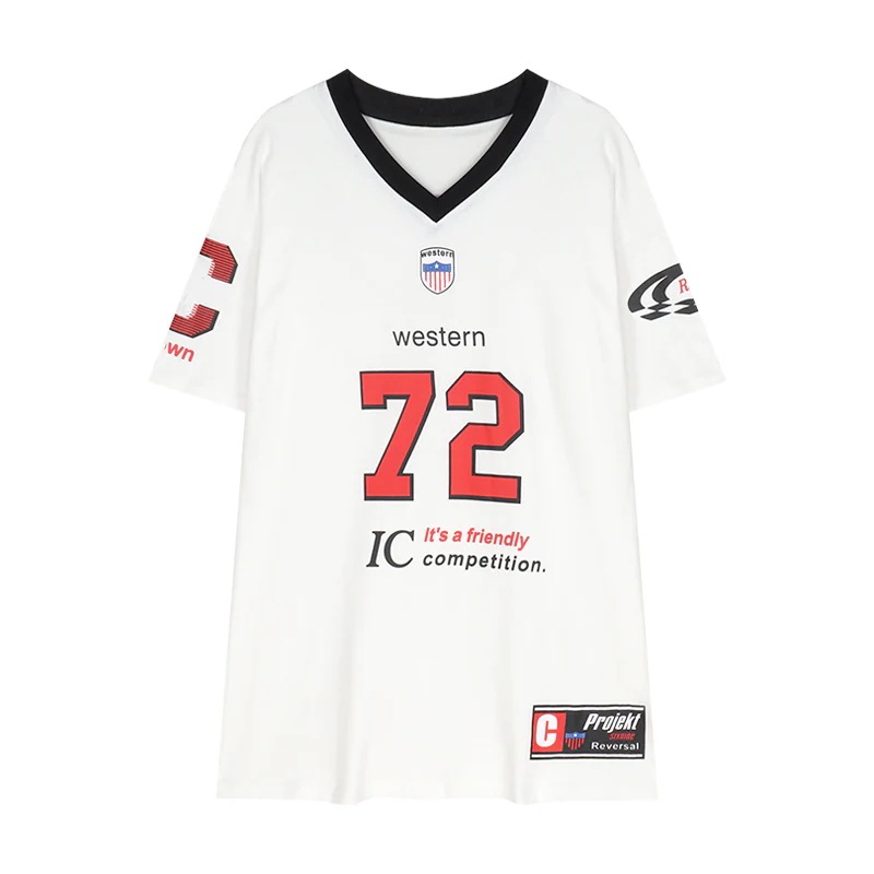 2024 夏 韓国可愛い風トップス Tシャツ ファッション 半袖 スリムフィット サイドペイントシルエットゆったり丈 休日レディースサイズ韓国Vネック おしゃれ カジュアル メンズライクフットシャツ