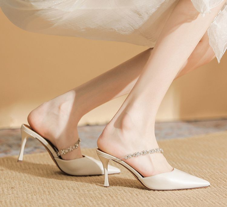 スタイルアップ!ヒールパンプスサンダル秋の新作スパイクホワイトハイヒール細ヒールスリッパ