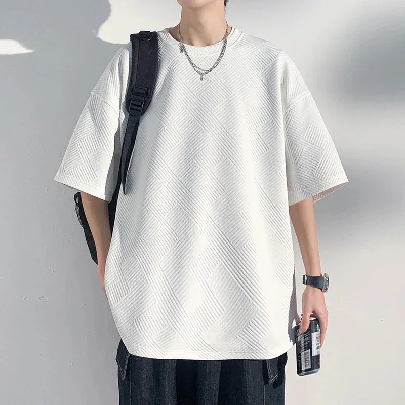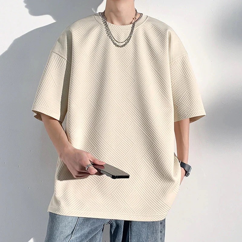 【新品】 メンズtシャツ半袖 ゆったりサイズ無地ジャカード Tシャツ2025新半袖Tシャツ男ワーフガー肌理感半袖Tシャツ男の日系ゆったりTシャツ