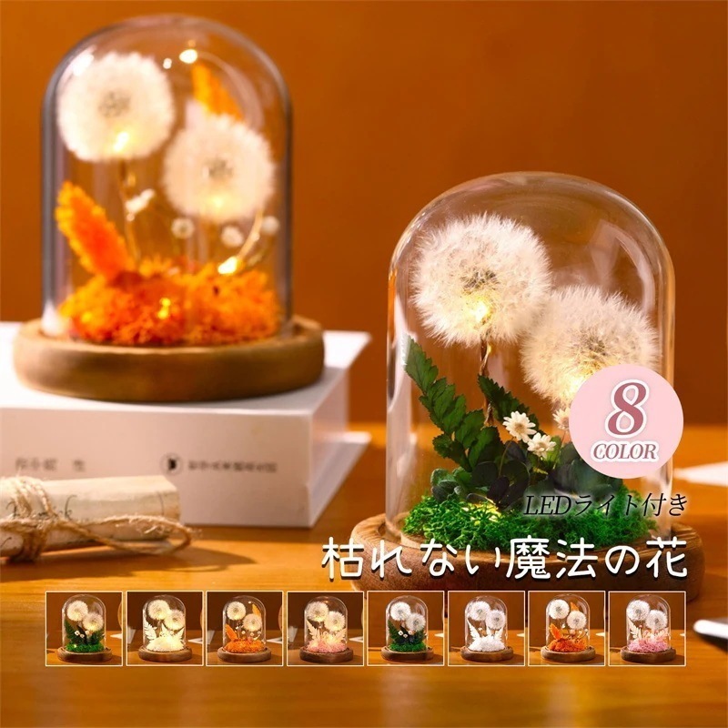 プリザーブドフラワー 造花 タンポポ 花束 枯れない花 LEDライト 手提げ袋 バレンタイン ホワイトデー 母の日 入学式 お見舞い 結婚記念日 誕生日プレゼント