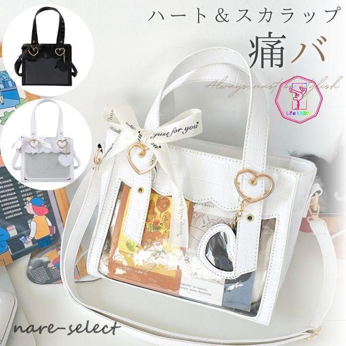 トートバッグ ハート クロコ柄 ブラ ショルダー クロコ トート 白 可愛い 2WAY ショルダーバッグ ロリータ 痛バ 黒 ハンドバッグ beauty痛バッグ 痛バック ミニ 小さめ