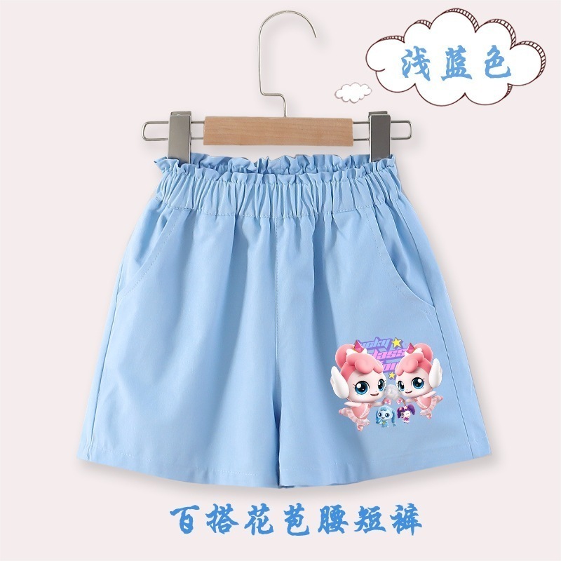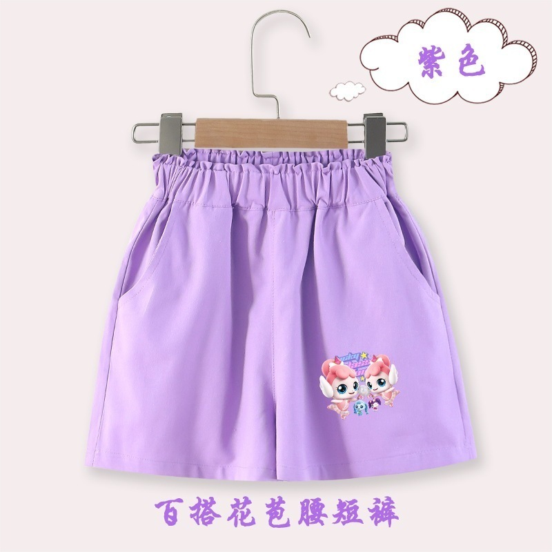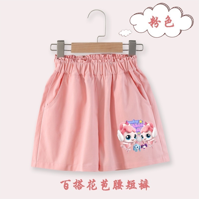 ティニピンキッズ 奇妙な萌え可女子児童夏パンツ新型中大童洋気五分ズボン薄い夏服子供花蕾腰ズボン