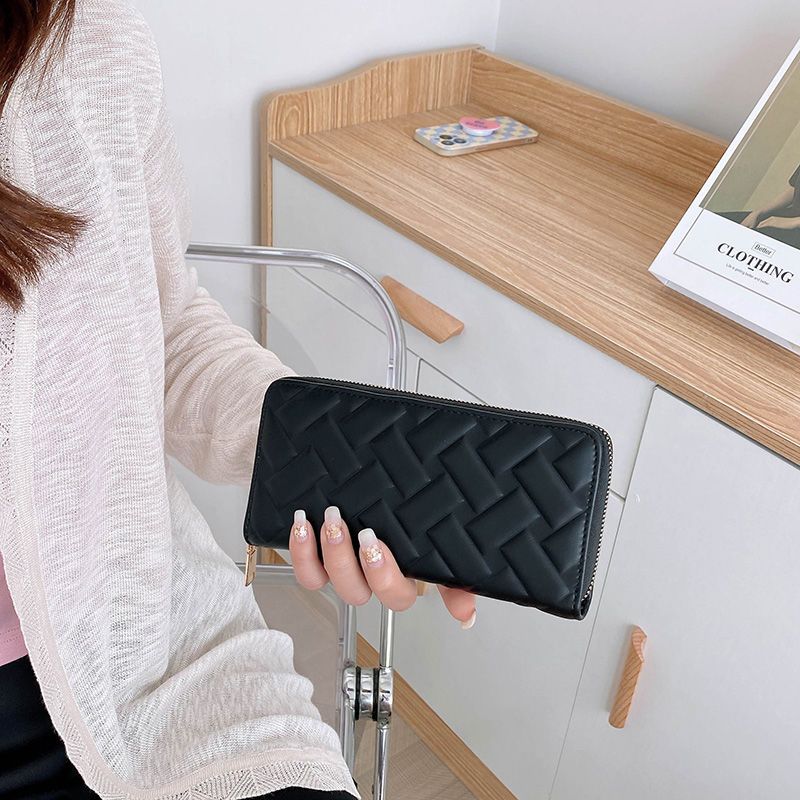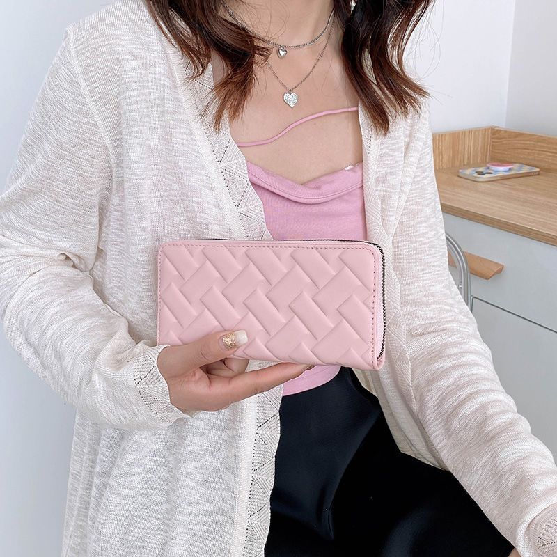 おしゃれ財布ロング丈大容量レディースハンドバッグ韓国版純色ジッパー財布 カードケース