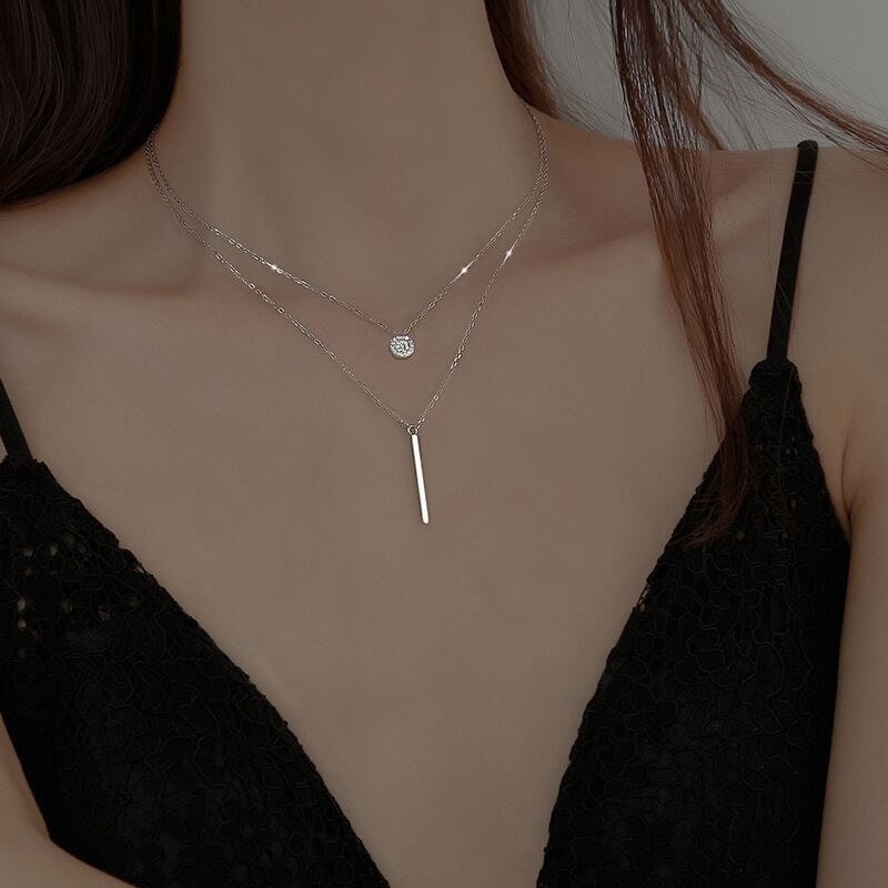 美しい首元ネックレス s 925 ダブルネックレス シンプル 鎖骨チェーン ins 上品