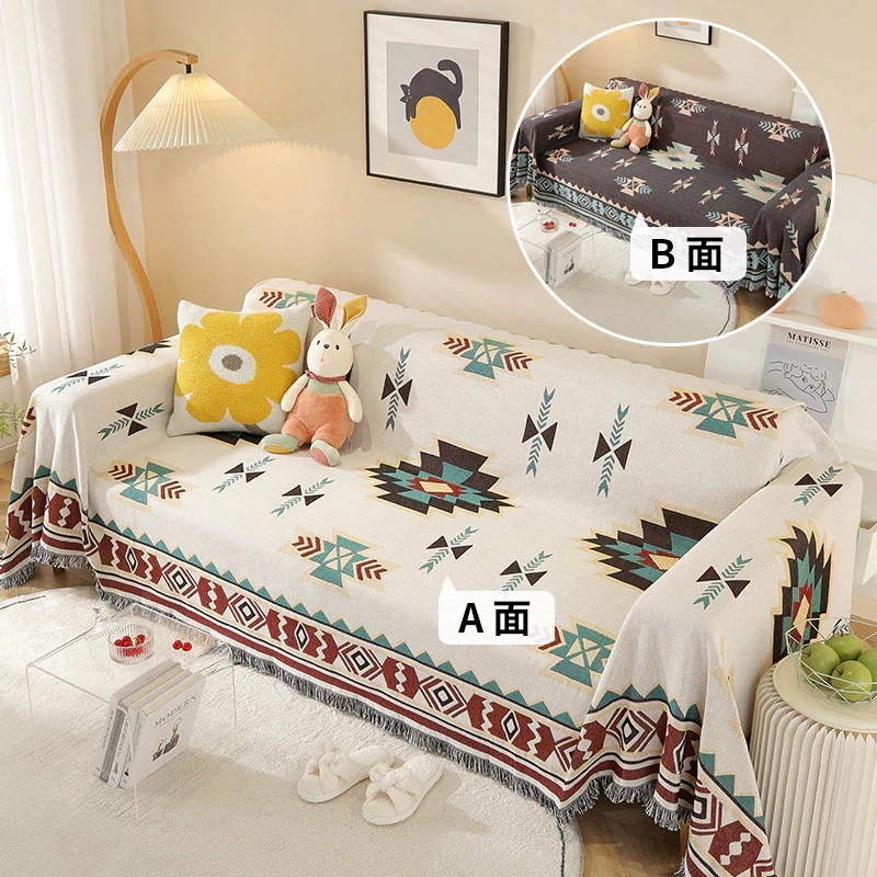 ソファカバー 北欧風 マルチカバーリバーシブル 多機能 ソファーかばー フリンジ付き3647
