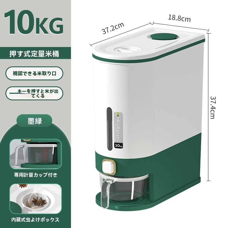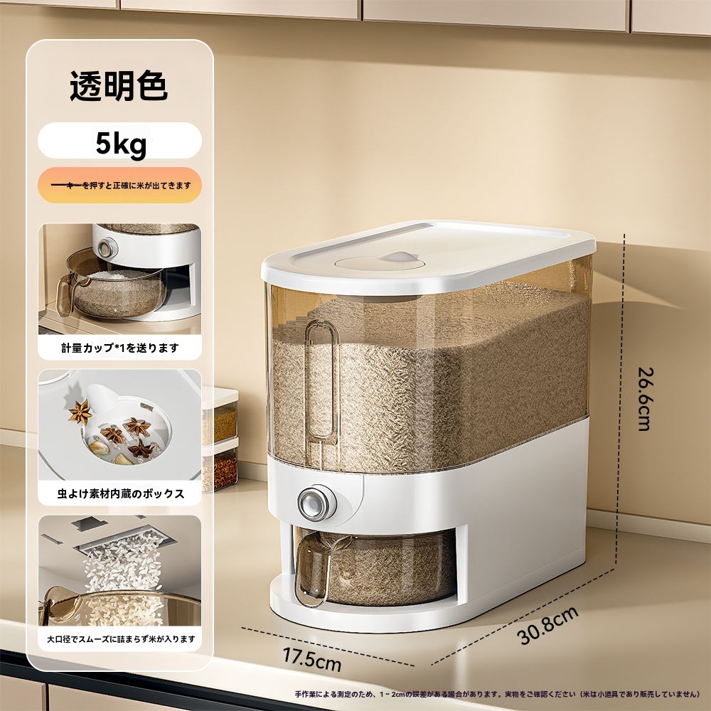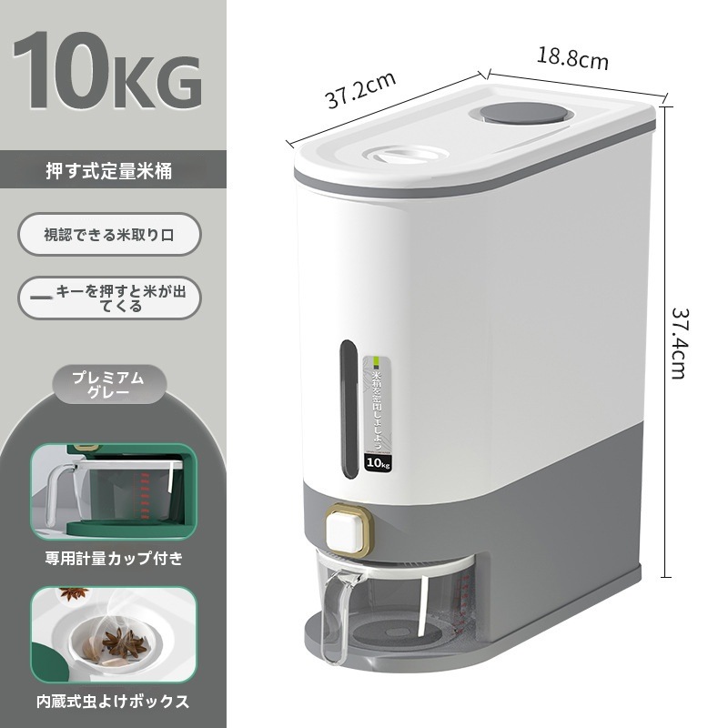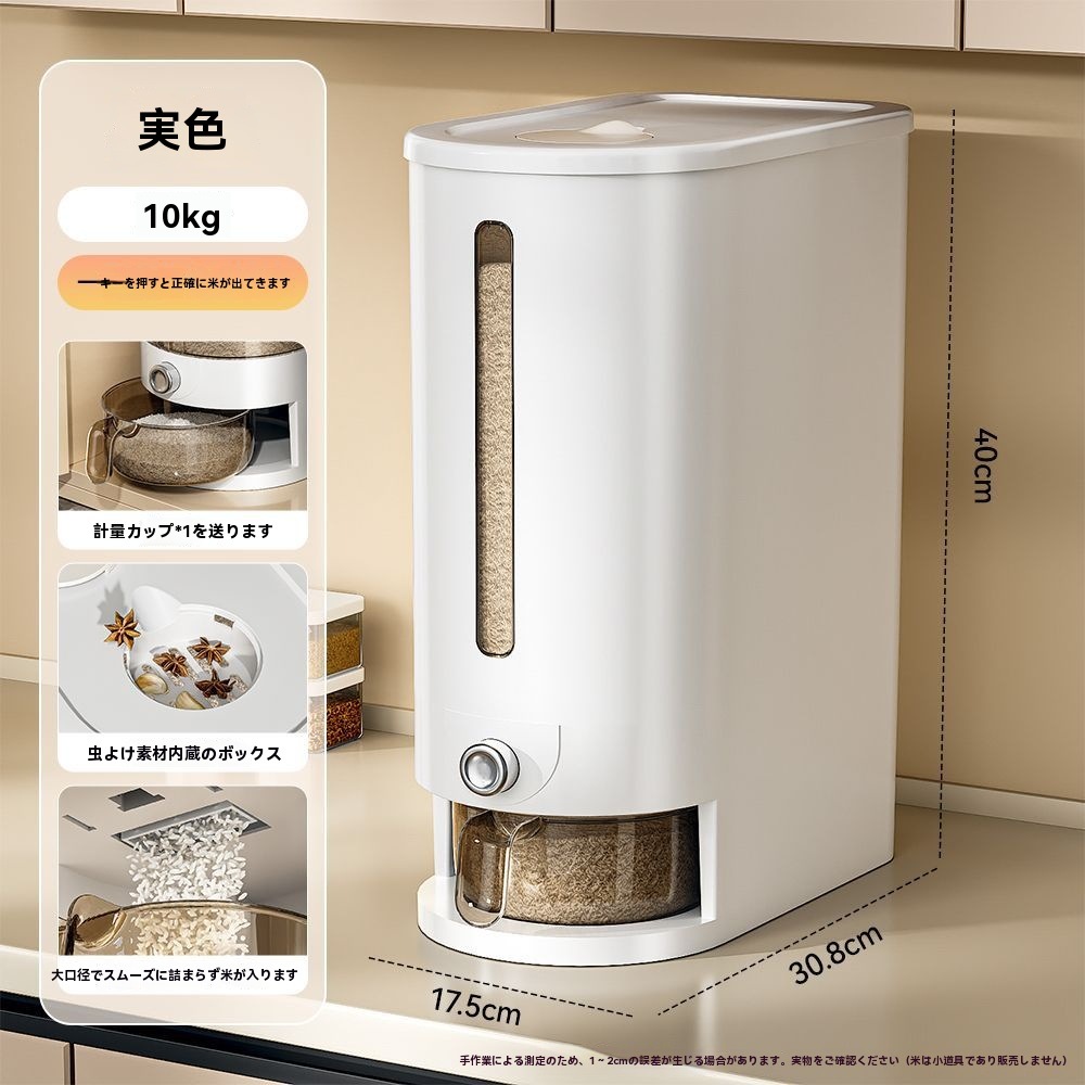 10L 米びつ 米入れ 保存容器 計量カップ付き 残量見える 計量 密閉 防湿 虫除け 洗える おしゃれ シンプル