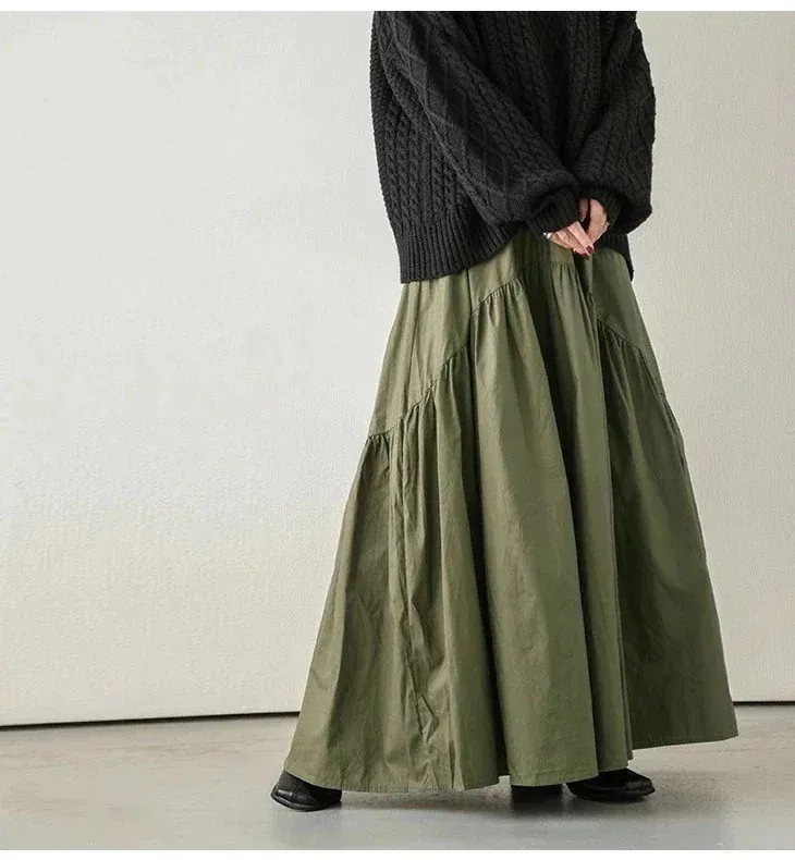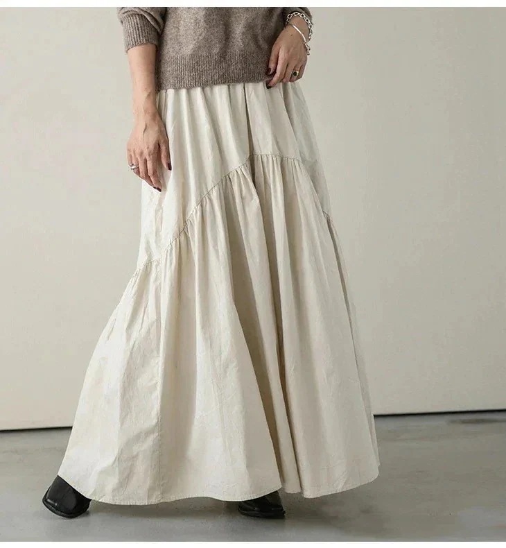 2024 日系 新作 おしゃれ カジュアル 百掛け スカート レトロ ハイウエスト 無地 マキシスカート マキシスカート プリーツスカート ロングスカート