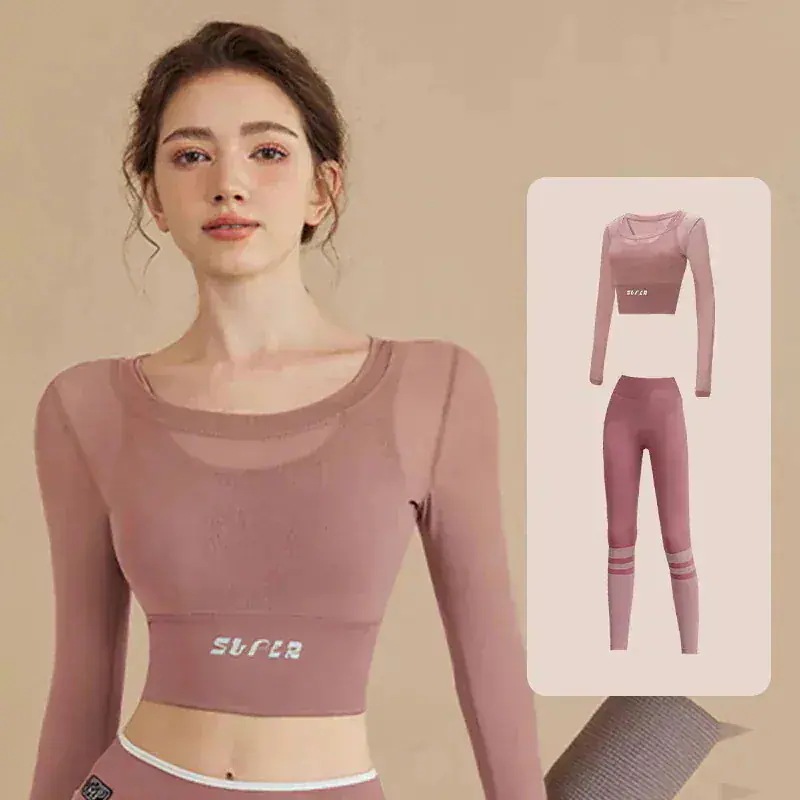 ヨガウェアセット レディース 長袖 新作 通気性 トレーニング ランニング フェイク ツーピース スポーツ フィットネスウェア