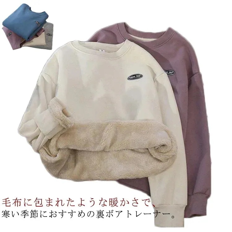 部屋着 パーカー ボア あったか 裏フリース レディース スウェット クルーネック 裏ボア ボア 長袖 裏起毛 プルオーバー ドルマンスリーブ ストレッチ トップス ルームウェア 暖か 防寒 起毛 厚