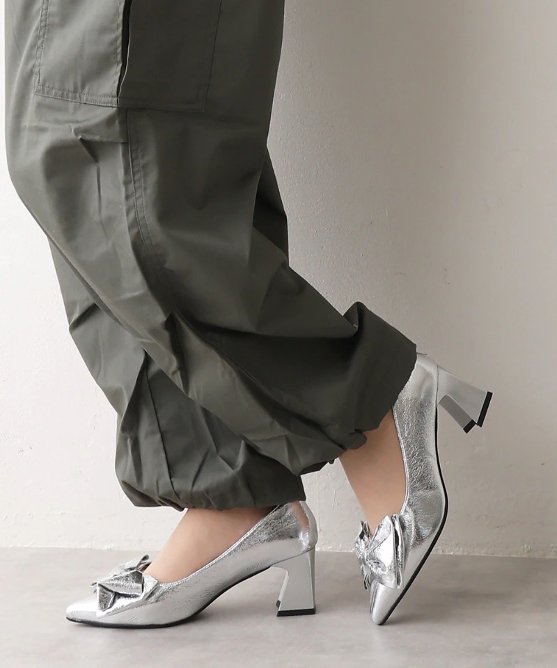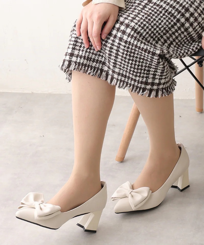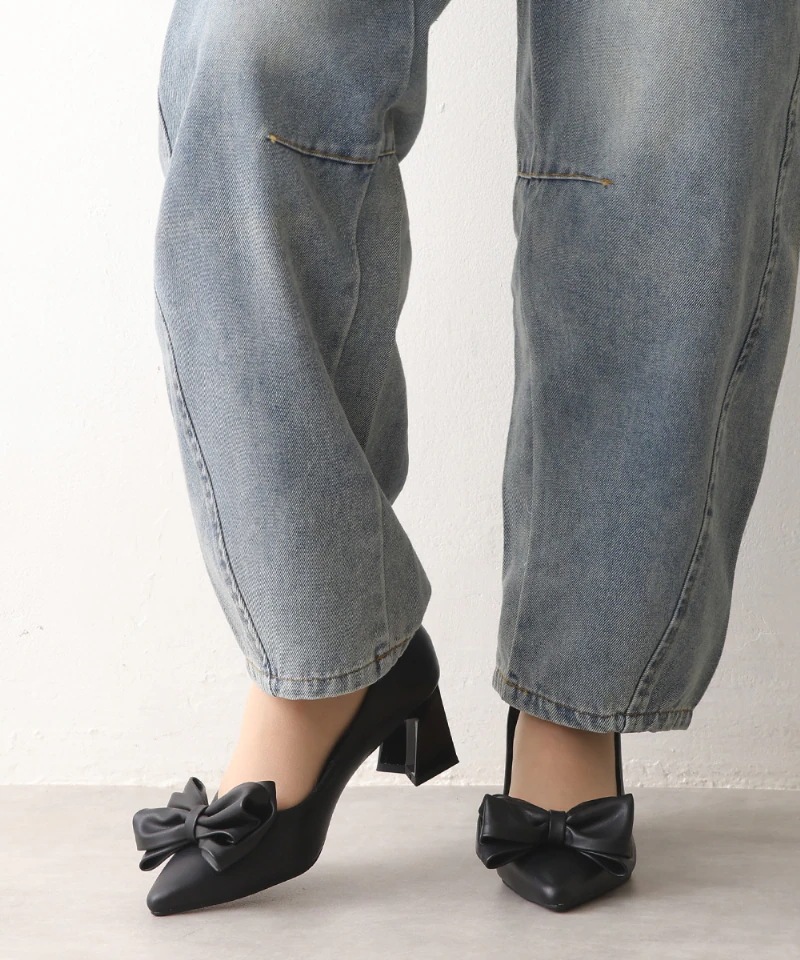 リボン ポインテッドトゥ パンプス