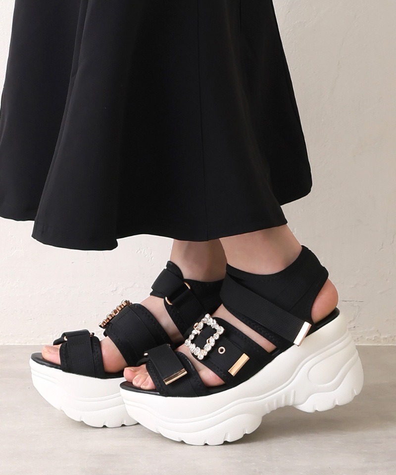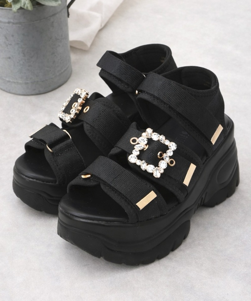 厚底スポーツサンダル ビジューバックル付き ベルクロ仕様