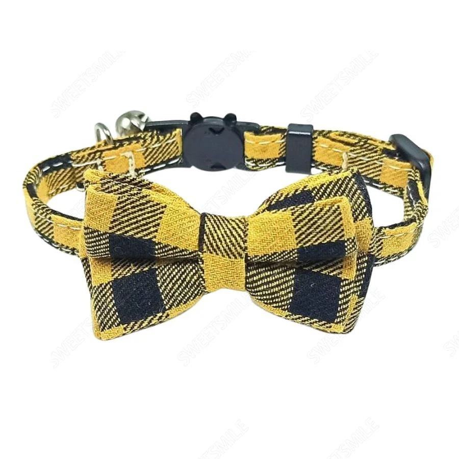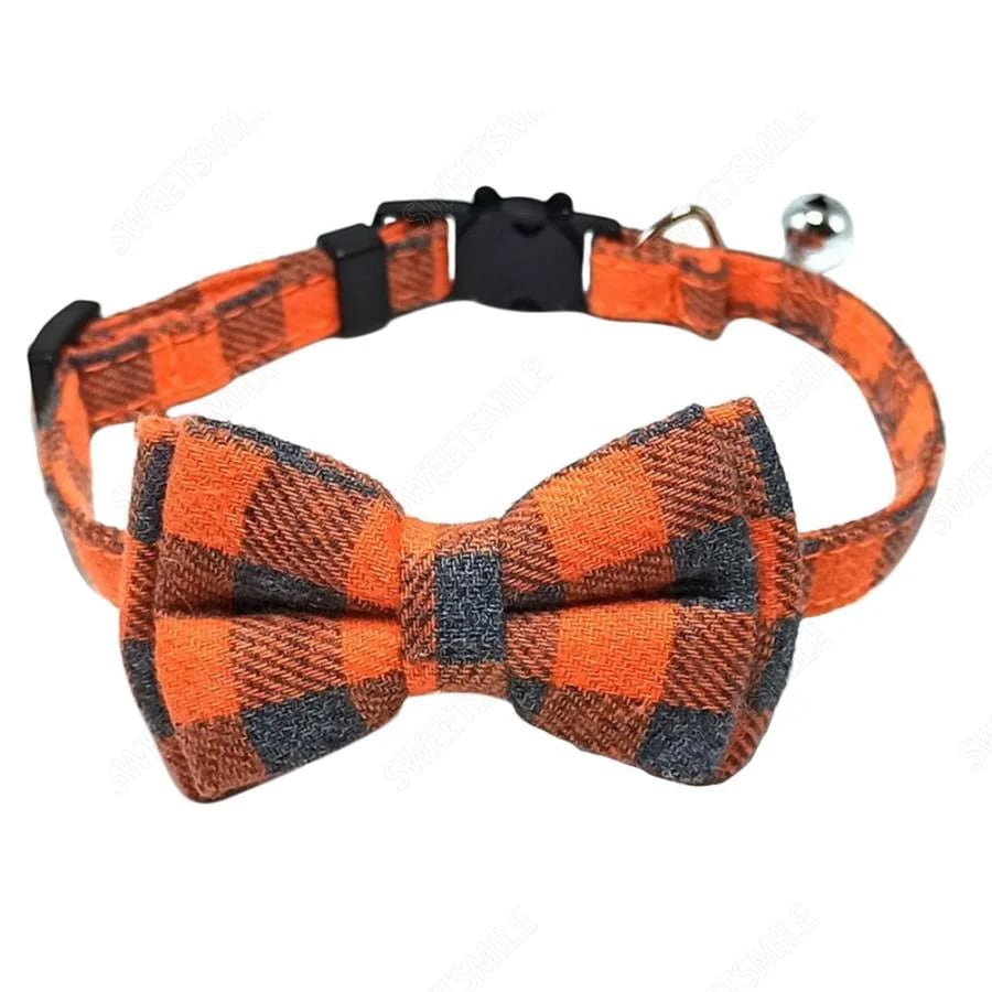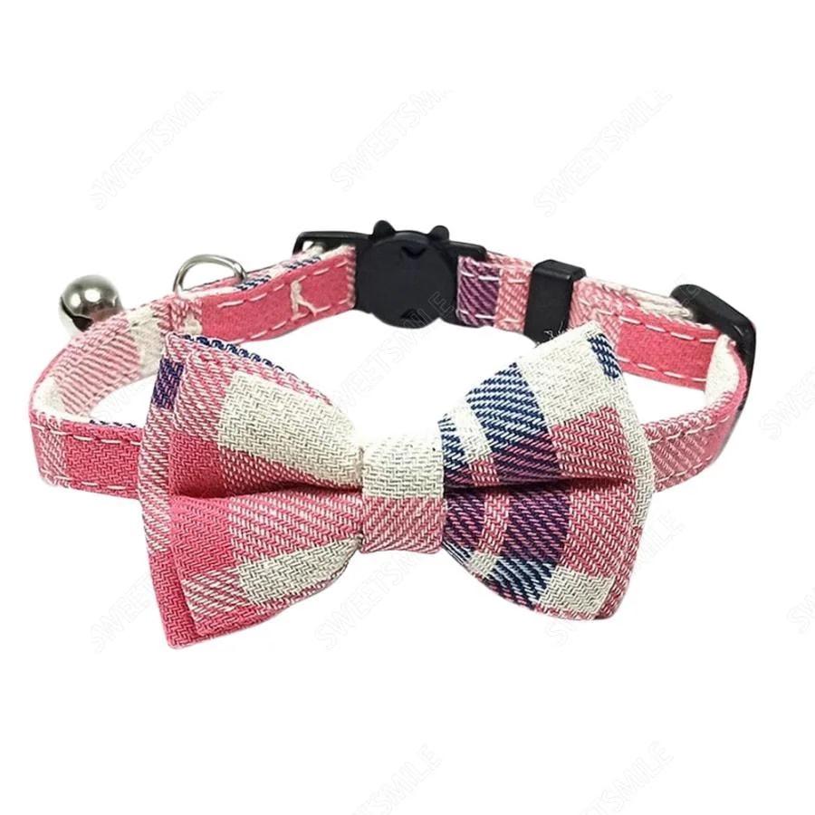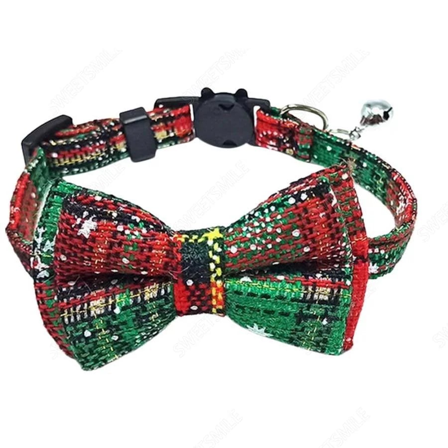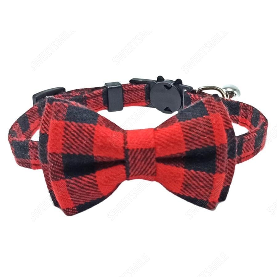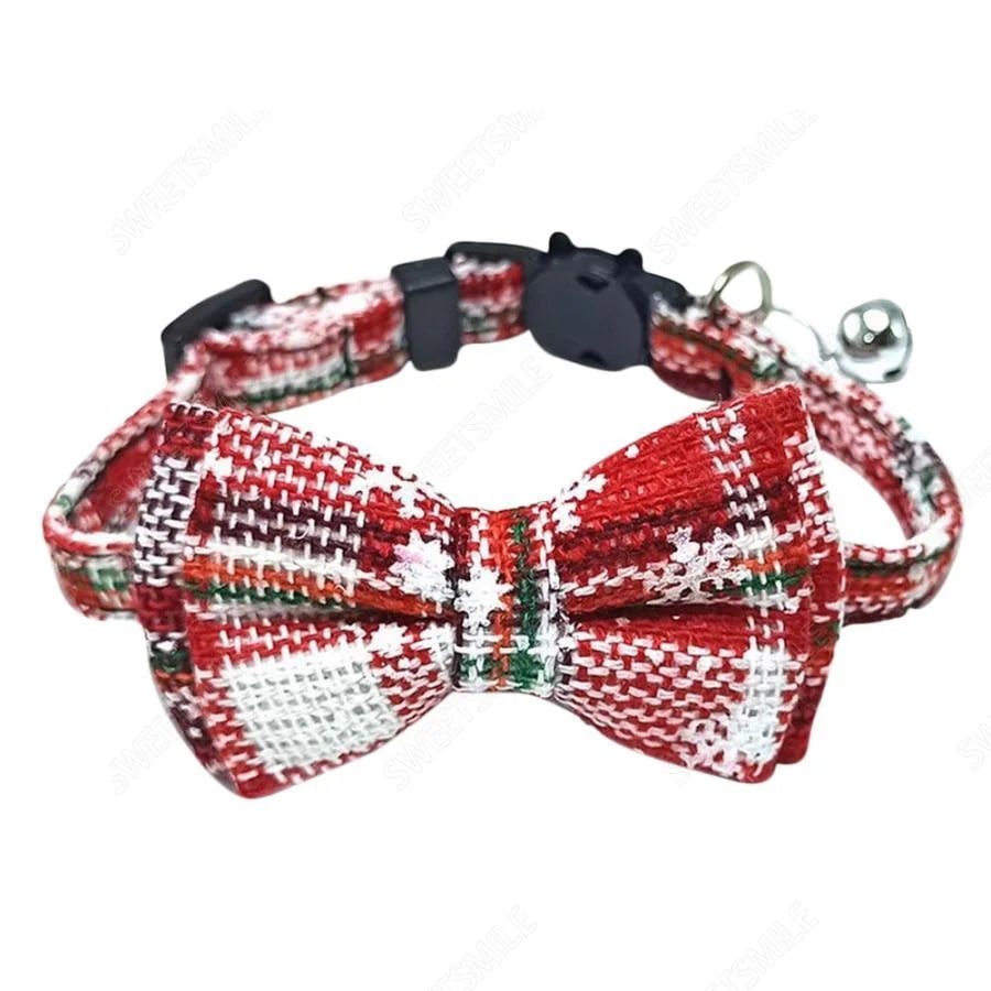 猫用首輪 ねこ ペット用品 チェック柄 カラー チョーカー セーフティーバックル 蝶ネクタイ リボン 鈴付き おしゃれ かわいい おめかし キュート 首輪 クリスマス
