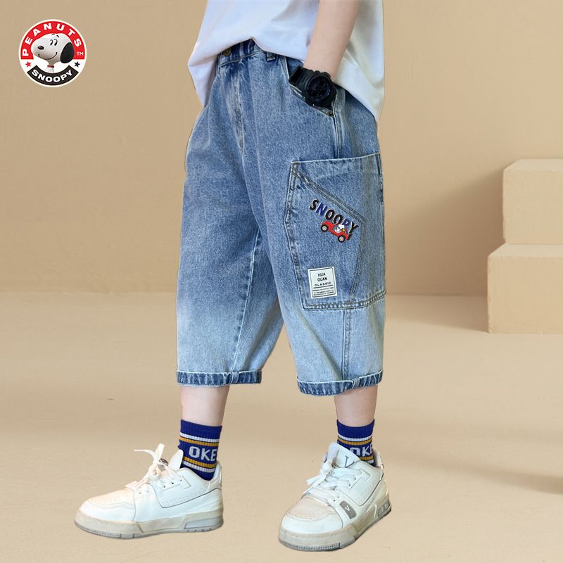 韓国版プリントスヌーピーデニム5分ズボン男児ゆったりショートパンツ2025新作夏には必ず