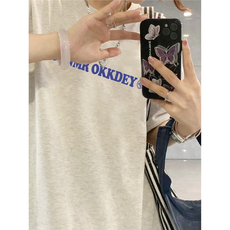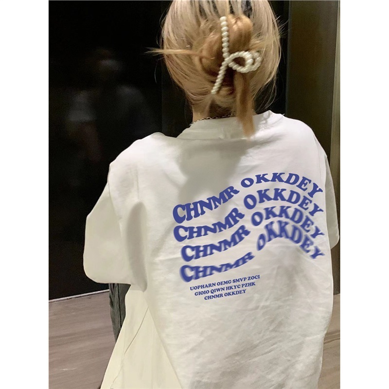女性用純綿ホワイト半袖Tシャツアメリカンスタイルのゆったり半袖トップス