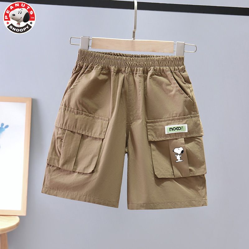 スヌーピー男児パンツ夏服2024夏純綿工装薄手カジュアル児童五分ズボン中大童潮