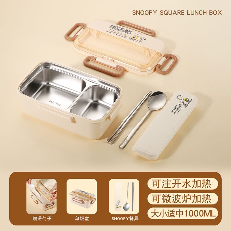 スヌーピー304ステンレス弁当箱高颜値学生サラリーマン耐高温二層ins風弁当箱弁当器